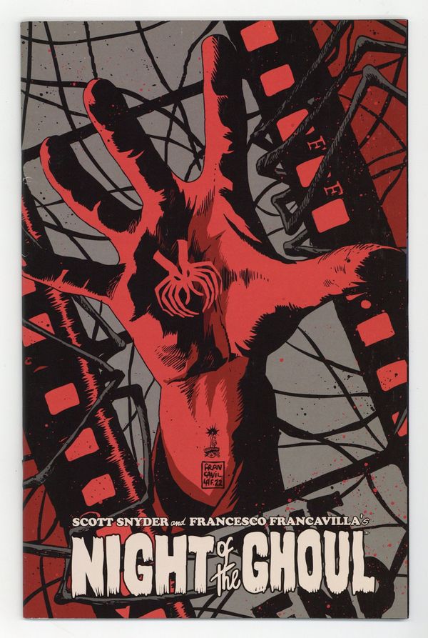 Published Oct 2022 by Dark Horse.$30.00Limited 1 for 100 Retailer Incentive Variant Cover. Written by Scott Snyder. Art and Cover by Francesco Francavilla. Shot in 1936, Night of the Ghoul by writer/director T.F. Merritt was meant to sit beside Frankenstein and Dracula as an instant classic . . . But the legendary film never made it to the silver screen. Just before editing was finished, a mysterious studio fire destroyed the footage and killed the cast and crew celebrating at the wrap party. Forest Inman is a horror film obsessive who digitizes old films for the famed Aurora movie studio. When Forest stumbles across a seemingly forgotten canister of footage, he just might have discovered the remnants of the lost classic Night of the Ghoul. This discovery sends Forest on a dark odyssey, where he's warned by a mysterious old man that the film's ghoul is far more than a work of fiction: it's a very real monster who plans to kill him. 56 pages, full color. Cover price $5.99.