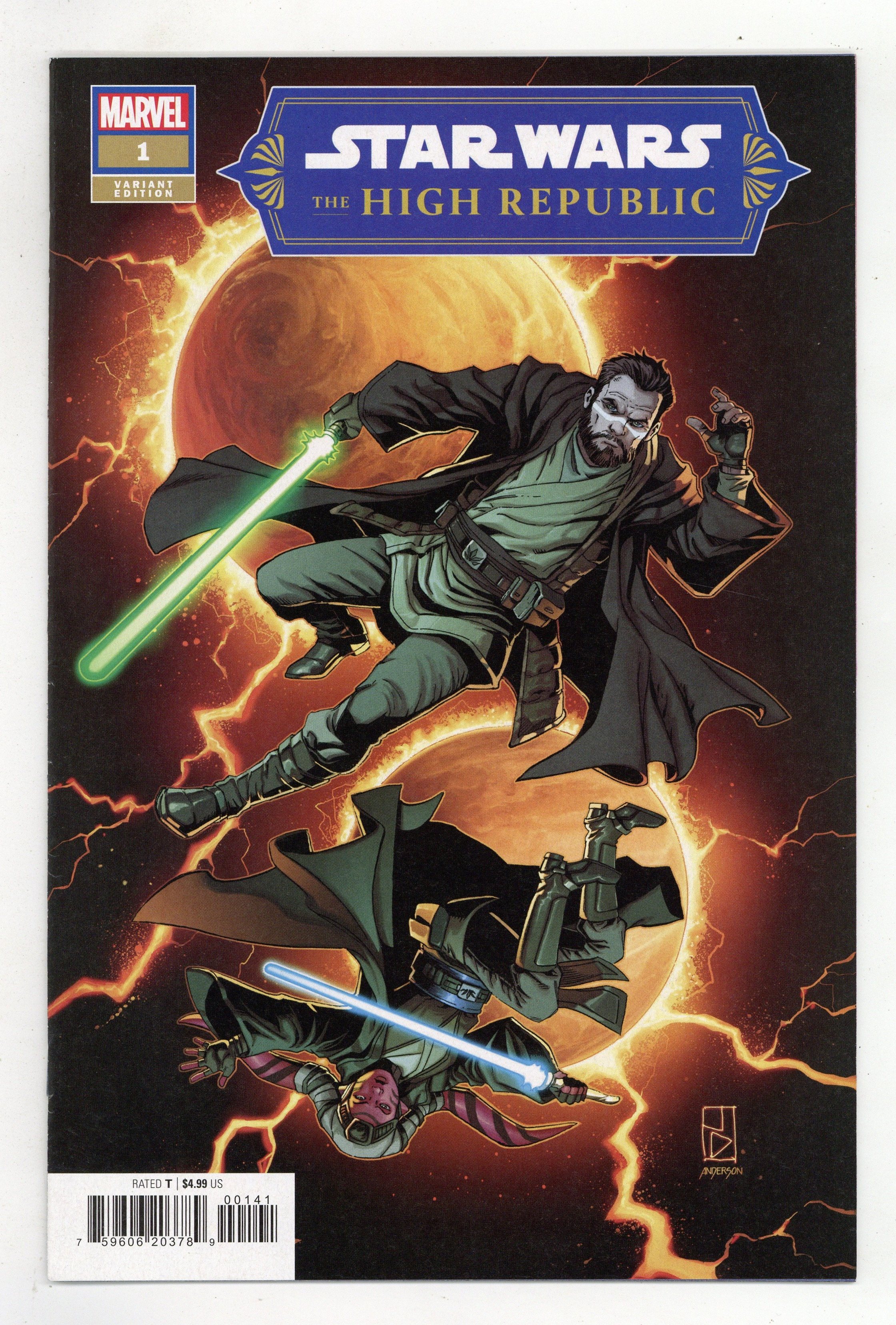 Limited 1 for 50 Retailer Incentive Variant Cover. Written by Cavan Scott. Art by Ario Anindito. Cover by Jan Duursema. A NEW CHAPTER BEGINS FOR STAR WARS: THE HIGH REPUBLIC! One hundred and fifty years before the fall of Starlight, another beacon burns bright in the galaxy, a beacon of faith and spirituality. Jedha. The Pilgrim Moon. The Kyber Heart. But tensions are rising in the holy city and dark days are to come. Jedi Vildar Mac, a Jedi safe and secure in who he is and what he could be, arrives as Jedha's fragile peace begins to crumble.. But a nightmare awaits...a nameless terror that will become the stuff of legend… 36 pages, full color. Rated T 36 pages, full color. Rated T 36 pages, full color. Rated T Cover price $4.99.