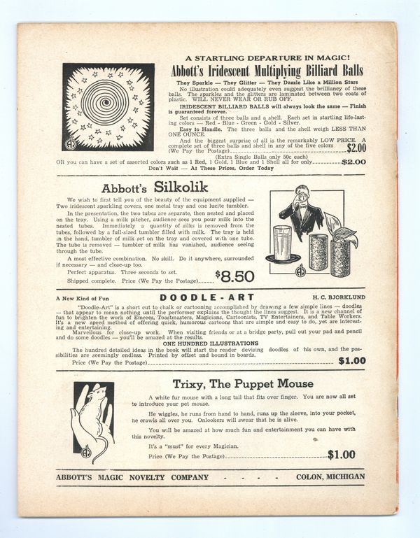 Published Sep 1953 by Abbott Magic & Novelty Co..$17.00- Staple rust: Slight.