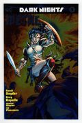 Convention Exclusive Foil cover. Written by Scott Snyder. Art by Greg Capullo and Jonathan Glapion. Cover by Jim Lee. The superstar BATMAN team of writer Scott Snyder and artist Greg Capullo reunite for a massive, universe-spanning event! DARK NIGHTS: THE FORGE and THE CASTING hinted at dark corners of reality that have never been seen till now! Now, as DARK DAYS: METAL begins, the Dark Multiverse is revealed in all its devastating danger-and the threats it contains are coming for the DC Universe! DARK DAYS: METAL is a DC event unlike any other-one that will push Batman, Superman and heroes of the Justice League beyond their limits to take on threats unlike any our world has ever seen! It will take the combined might of the World's Greatest Heroes as you've never seen them before to face what's coming their way! 40 pages, full color. Rated T+