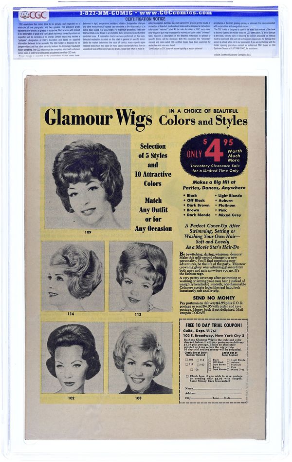 Cover pencils by Al Hartley, inks by Frank Giacoia. No More Tears!, script by Roy Thomas, pencils by Al Hartley, inks by John Tartaglione. Patsy's Marvelous Hair Styles! fashion page. Patsy's Fashion Page. Hedy's Heavenly Hair Styles fashion page. Buzz's Sensational Sports-Clothes! fashion page. Ad for Millie the Model, pencils by Stan Goldberg. Paper dolls. 36 pgs. $0.12. Cover price $0.12.