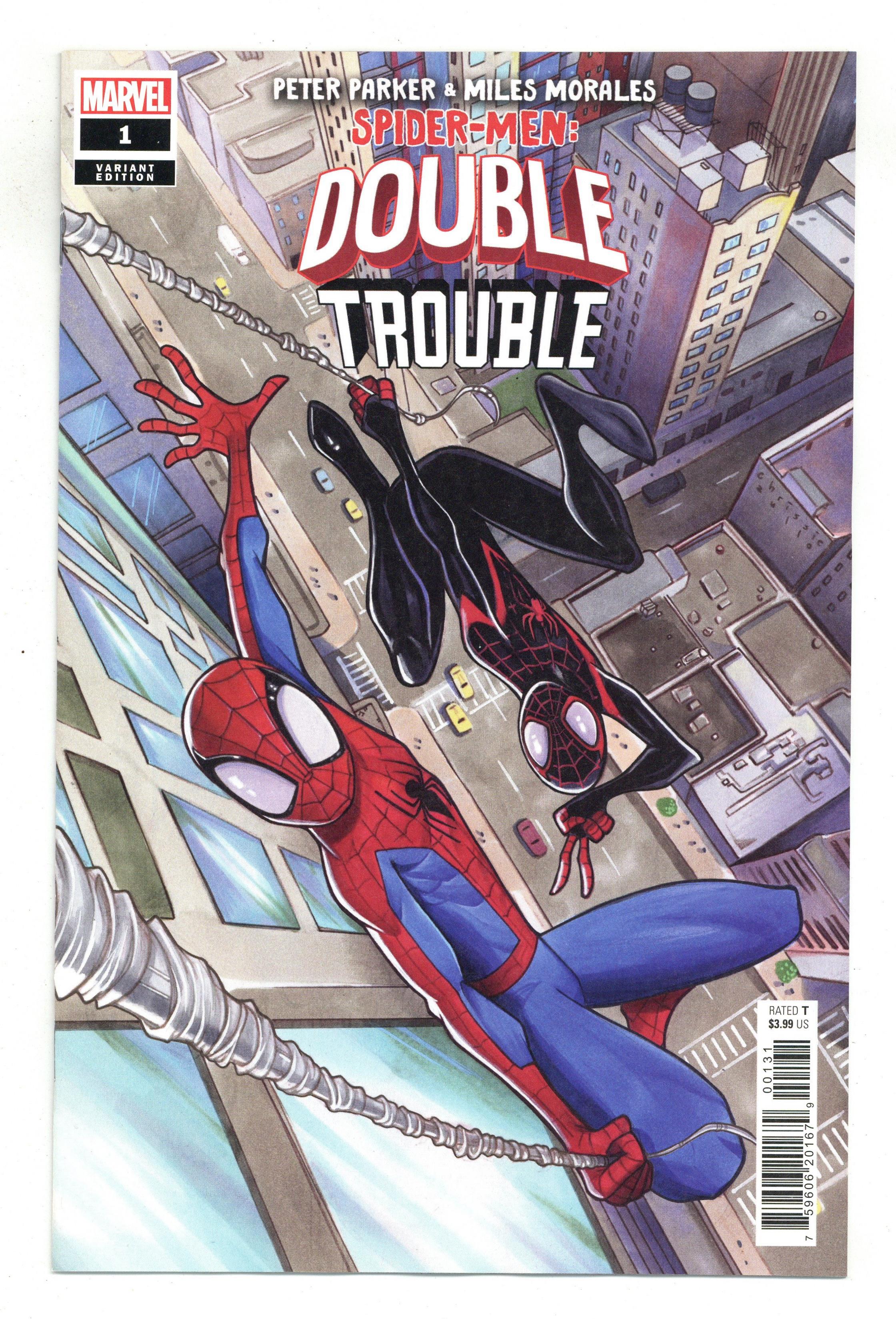 $7.00Limited 1 for 25 Retailer Incentive Variant Cover. Written by Mariko Tamaki; Vita Ayala. Art by Gurihiru. Cover by Chrissie Zullo. They're friends, heroes and…sidekicks? Peter has dragged Miles into Take Your Sidekick to Work Day, and Miles is not amused - they're both Spider-Man, after all! So when Peter makes a mistake that unleashes villainous shenanigans on New York City, it's up to Miles to save the day - and prove who's the true sidekick among the Spider-Men. Vita Ayala joins the fan-favorite team that brought you SPIDER-MAN & VENOM: DOUBLE TROUBLE and THOR & LOKI: DOUBLE TROUBLE for a brand-new adventure! 28 pages, full color. Rated Teen Cover price $3.99.