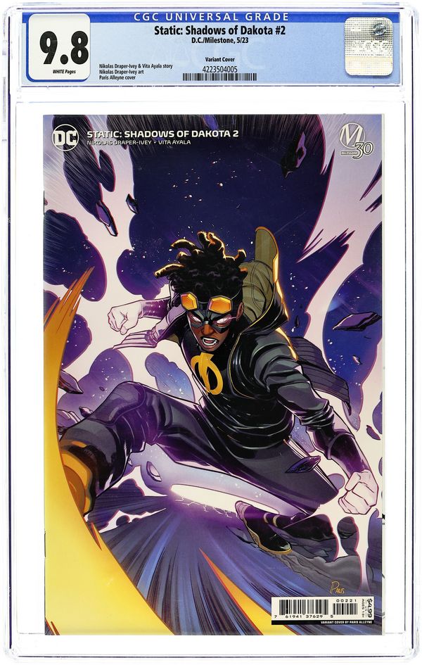 Written by Nikolas Draper-Ivey, Vita Ayala. Art by Nikolas Draper-Ivey. Cover by Paris Alleyne. As if vigilantes hunting down Bang Babies in the streets wasn't enough, Virgil learns that his young friend Quincy is manifesting powers--making him their next target! Meanwhile, down in the shadows Ebon is investigating a connection between the vigilantes and the disappearance of his brother, Rubberband Man. 32 pages, full color. Rated T+ Cover price $4.99.
