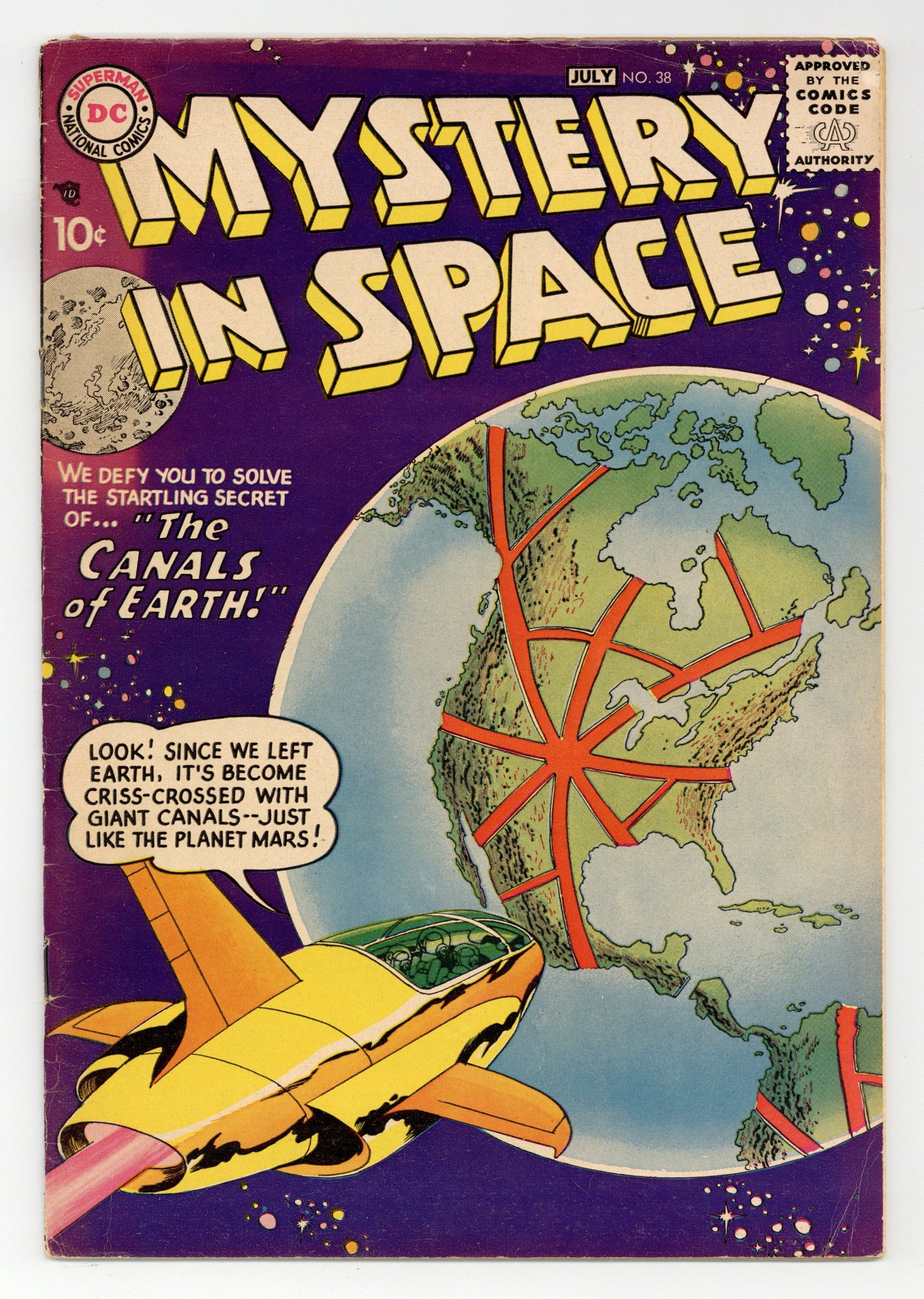 "The Canals of Earth!"; "The Man Who Doomed a World!" (art by Carmine Infantino); "Trail of the Glowing Atoms!" (art by Gil Kane); and "The New Year's Eve of 2000 A.D.!" Cover swipe of Frank Frazetta's Famous Funnies 214 cover. Kane cover. 36 Pages, Full Color. Cover price $0.10.