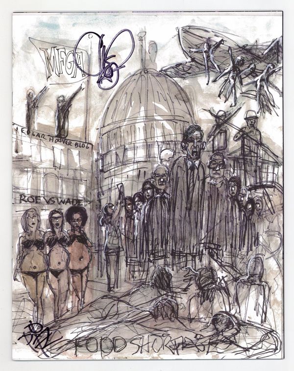 Written by Matteo Pizzolo. Art by Carlos Granda. Cover by Chuck D. What if a contested Presidential election plunged America into turmoil? What if political violence consumed the streets? And what if a raging Supreme Court, in a strict interpretation of the 2nd Amendment, legitimized and deputized all militias, transforming the entire country into a paramilitary police state? What if a freedom fighter emerged from the chaos, raised a civilian army, and carved out a territory across the United States?… pushing out police, militias, and National Guard… enforcing its own laws… Sovereign. What if Americans refused to be governed? In this speculative fiction comic book series ripped from tomorrow's headlines, a mysterious figure named Vya Of Brightstars will rise from the crisis, but is she a freedom fighter or a terrorist? Either way, her rogue state will not just blaze a path across America, it will also inspire others to raise their own armies... some in solidarity, others in opposition. 'ROGUE STATE... is a genre known as 'speculative fiction.' Except that it doesn't seem as speculative anymore.' (-The San Francisco Chronicle) From writer Matteo Pizzolo (CALEXIT, GODKILLER) and artist Carlos Granda (PIROUETTE, CALEXIT: SAN DIEGO), comes this tale of rebelling against tyranny, reconquering stolen land, punching fascists in the face, and building a better nation. 32 pages, full color. Rated mature Cover price $9.99.