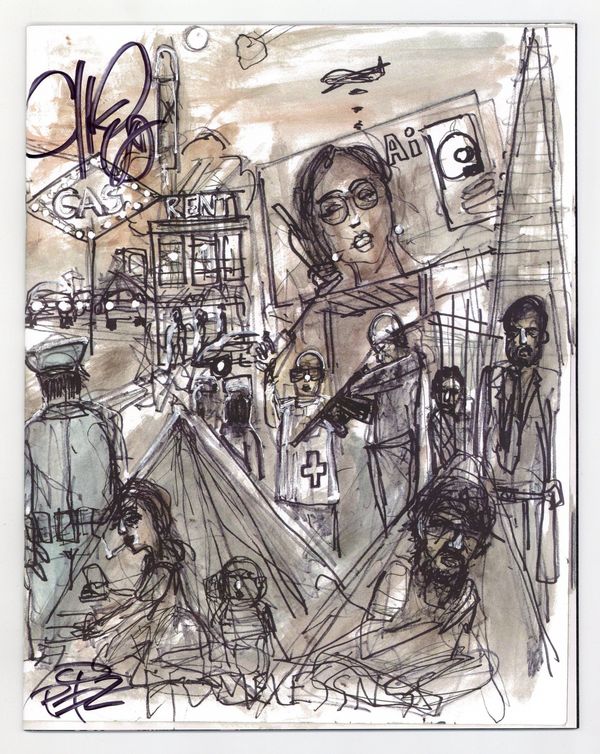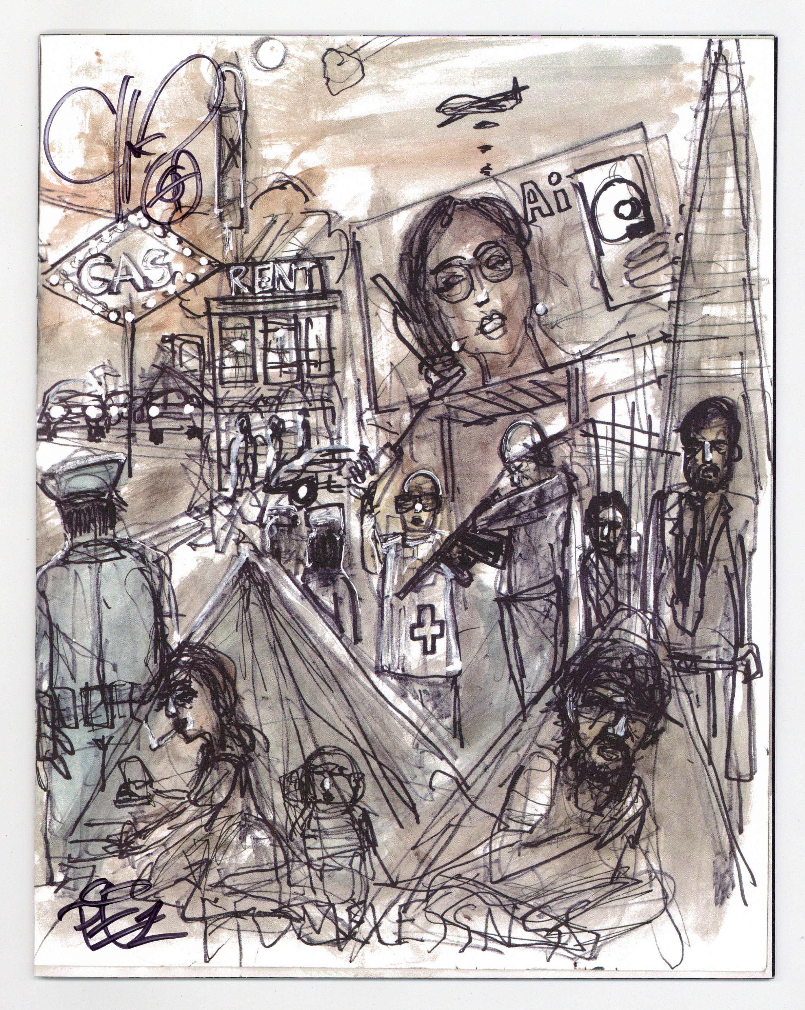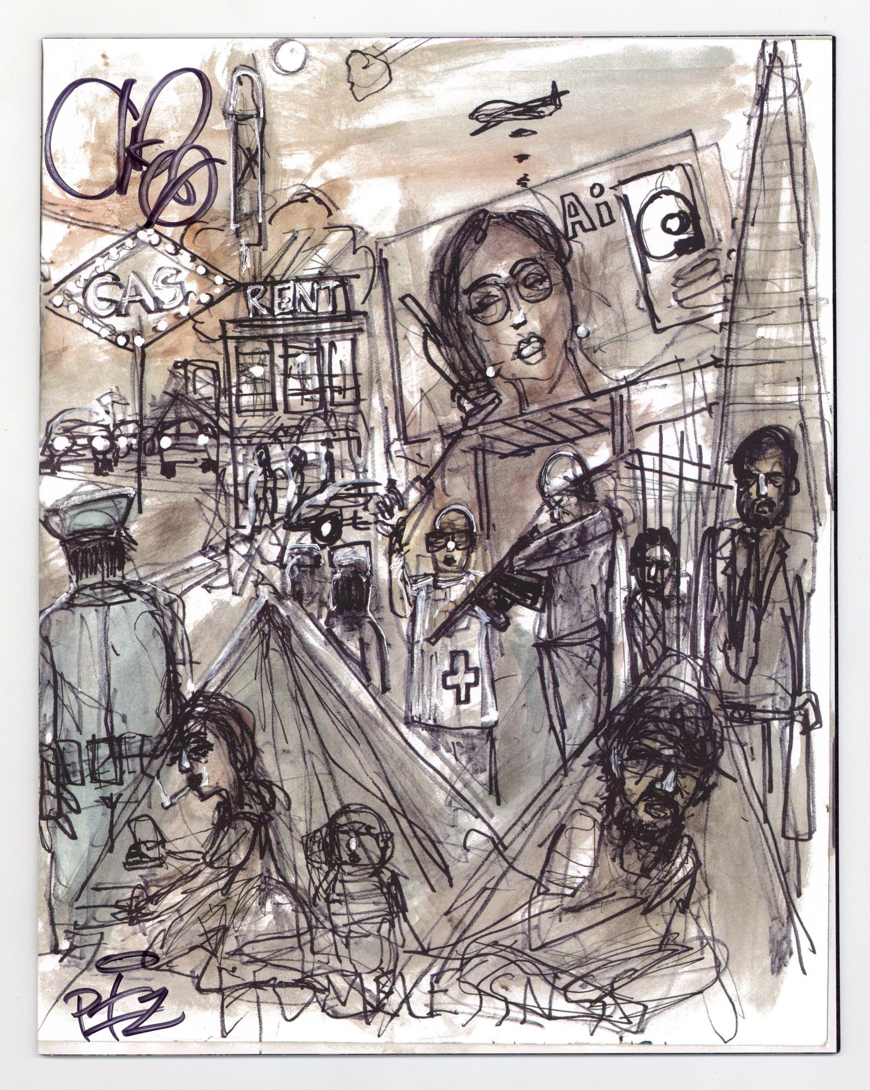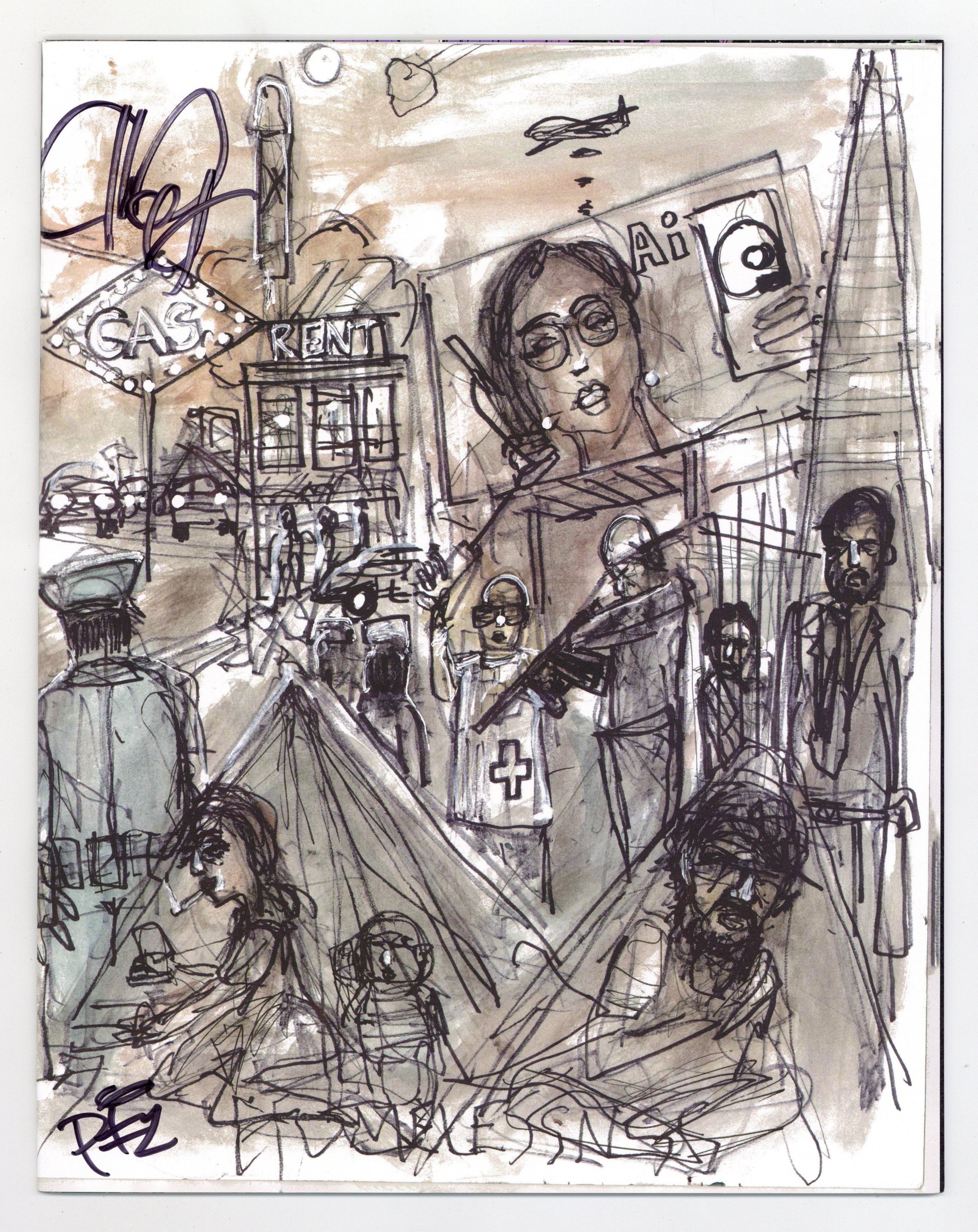 Written by Matteo Pizzolo. Art by Carlos Granda. Cover by Chuck D. What if a contested Presidential election plunged America into turmoil? What if political violence consumed the streets? And what if a raging Supreme Court, in a strict interpretation of the 2nd Amendment, legitimized and deputized all militias, transforming the entire country into a paramilitary police state? What if a freedom fighter emerged from the chaos, raised a civilian army, and carved out a territory across the United States?… pushing out police, militias, and National Guard… enforcing its own laws… Sovereign. What if Americans refused to be governed? In this speculative fiction comic book series ripped from tomorrow's headlines, a mysterious figure named Vya Of Brightstars will rise from the crisis, but is she a freedom fighter or a terrorist? Either way, her rogue state will not just blaze a path across America, it will also inspire others to raise their own armies... some in solidarity, others in opposition. 'ROGUE STATE... is a genre known as 'speculative fiction.' Except that it doesn't seem as speculative anymore.' (-The San Francisco Chronicle) From writer Matteo Pizzolo (CALEXIT, GODKILLER) and artist Carlos Granda (PIROUETTE, CALEXIT: SAN DIEGO), comes this tale of rebelling against tyranny, reconquering stolen land, punching fascists in the face, and building a better nation. 32 pages, full color. Rated mature Cover price $9.99.