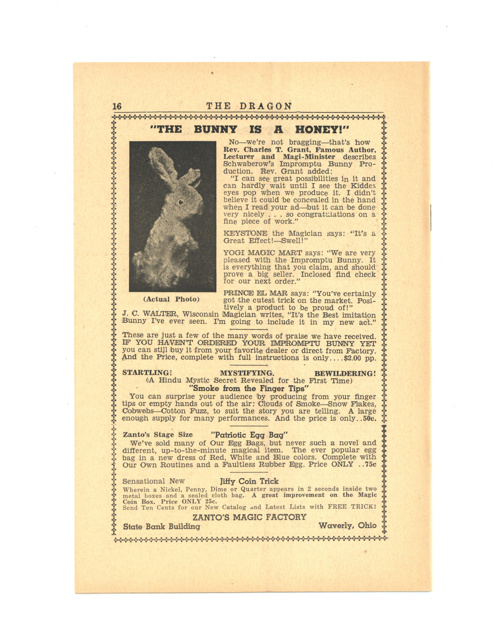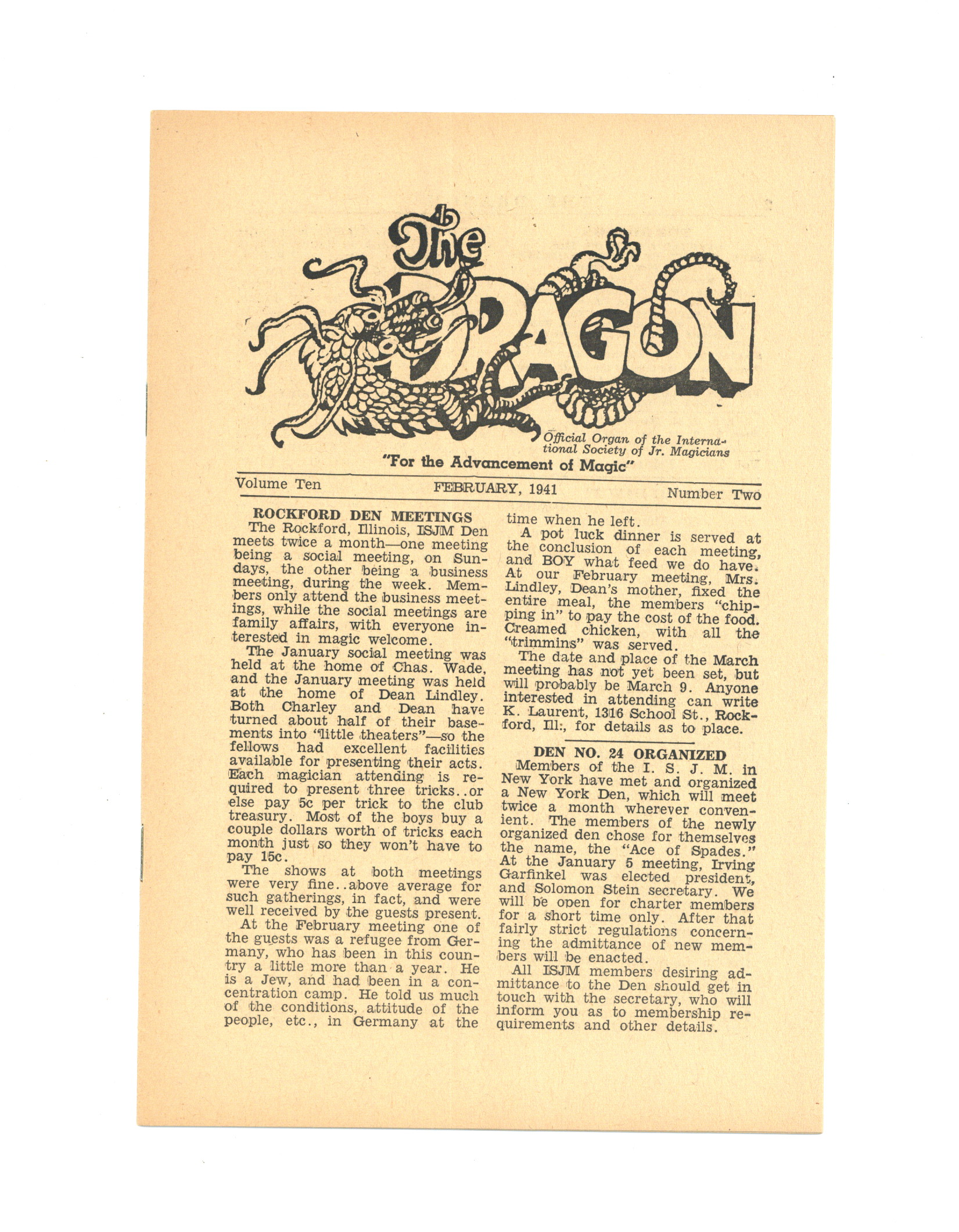 Published Feb 1941 by International Society of Junior Magicians.$19.00Official organ of the International Society of Junior Magicians, containing news and tips. 16 pages on newsprint.