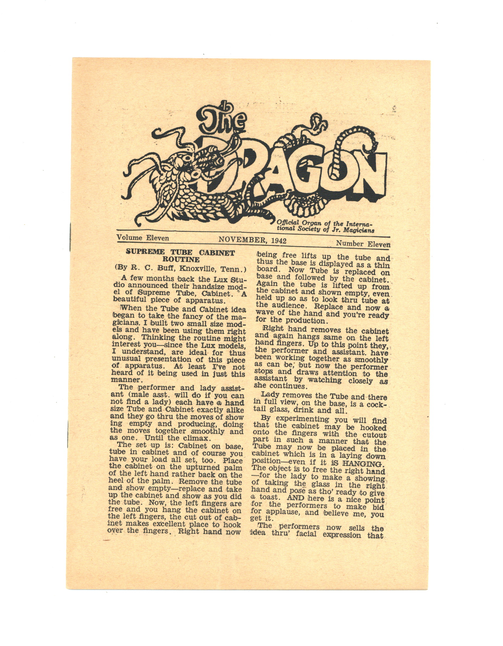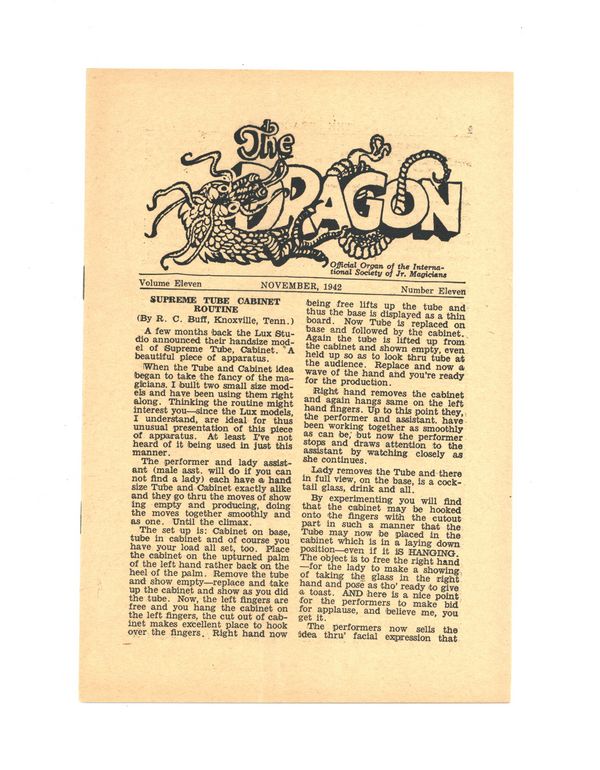 Published Nov 1942 by International Society of Junior Magicians.$19.00Official organ of the International Society of Junior Magicians, containing news and tips. 16 pages on newsprint.