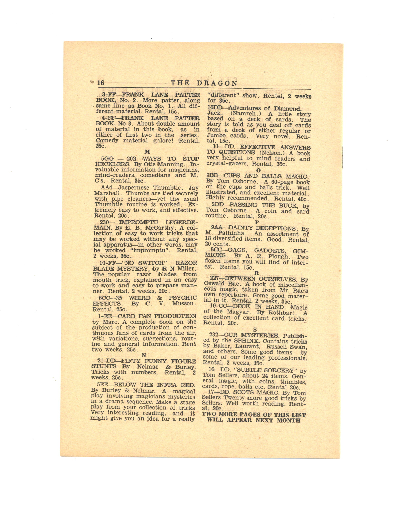 Published Dec 1942 by International Society of Junior Magicians.$19.00Official organ of the International Society of Junior Magicians, containing news and tips. 16 pages on newsprint.