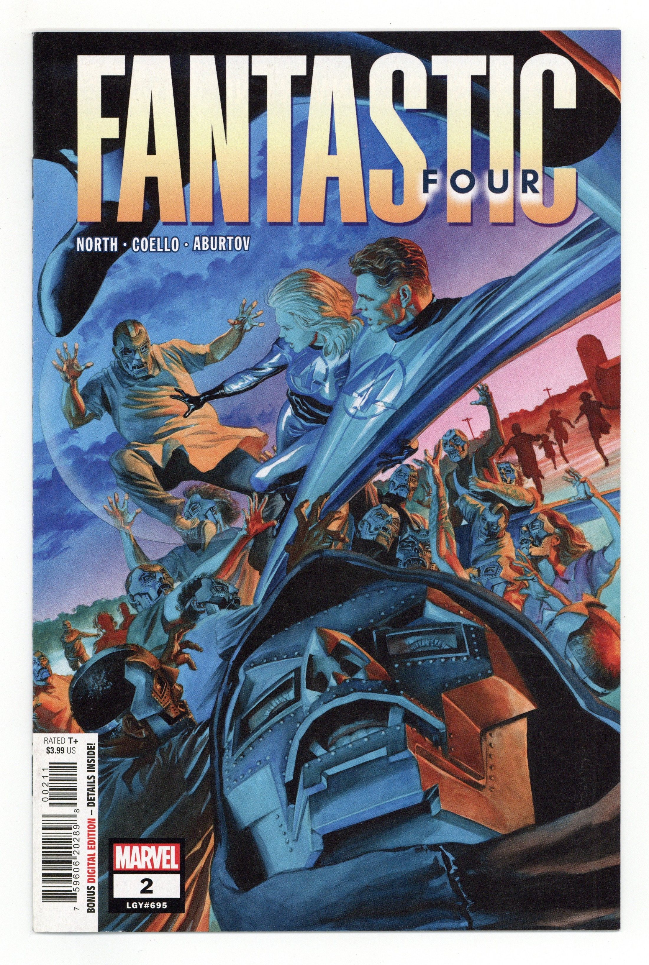 Tags: Fantastic Four$18.00Written by Ryan North. Art by Iban Coello. Cover by Alex Ross. "WHATEVER HAPPENED TO THE FANTASTIC FOUR?" Reed and Sue are on the run from - well, a lot of things, actually! Things are not going great for the Fantastic Four. But they find themselves in even more trouble when they stop in a small town with a terrible secret! That terrible secret is revealed literally on the second page of this issue, and Reed and Sue spend the rest of the issue trying to survive it, but stop reading here if you don't want it spoiled... Yep, it's Reed and Sue versus a town full of killer Doombots. 28 pages, full color. Rated T+ Cover price $3.99.