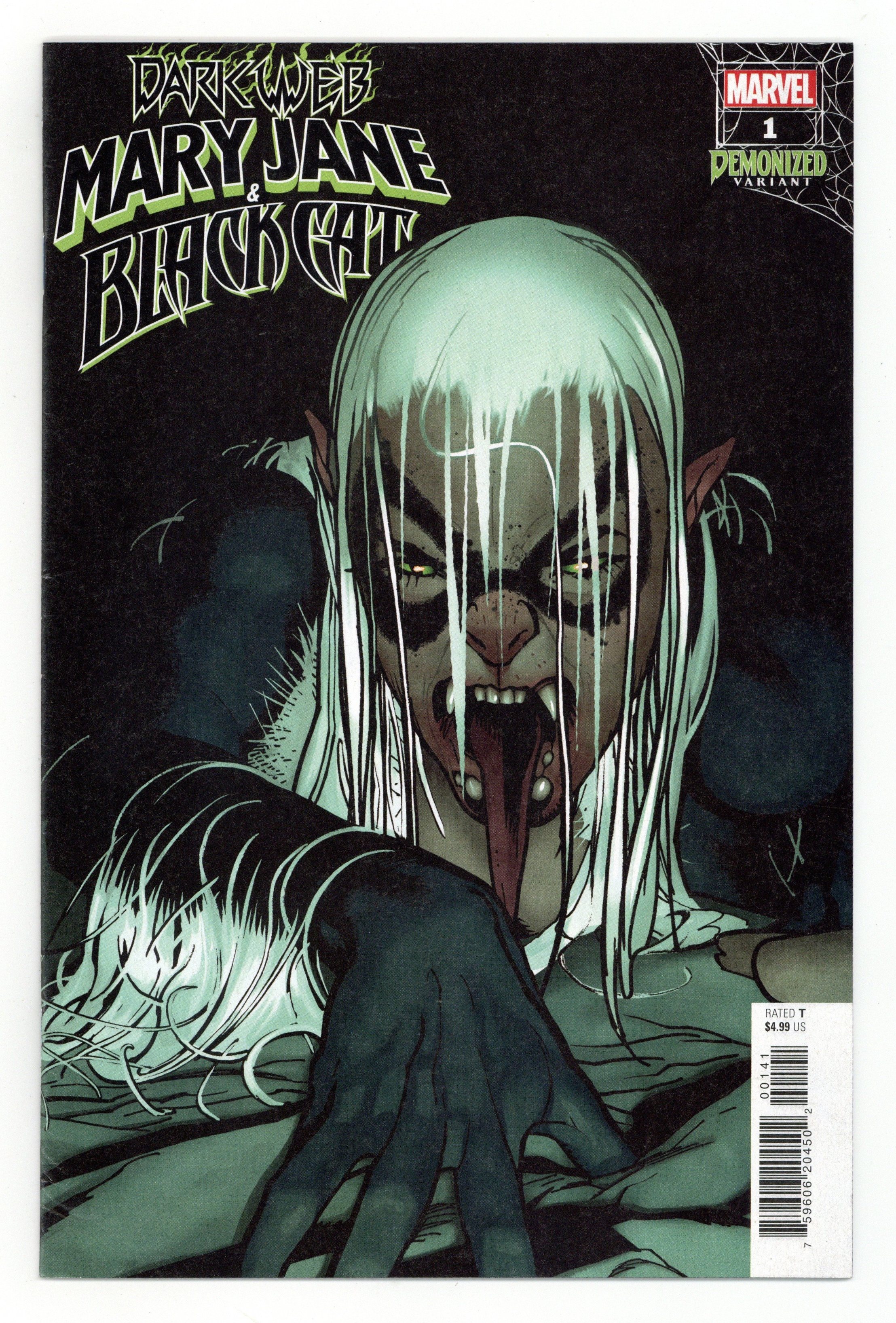 Tags: Dark Web (part 4), Spider-Man$6.00Written by Jed MacKay. Art by Vincenzo Carratu. Cover by Adam Hughes. From Jed MacKay (MOON KNIGHT, IRON CAT) and Vincenzo Carratu comes one of the most explosive and kick-ass adventures in Marvel Memory! Set against the explosive backdrop of DARK WEB, Mary Jane Watson and Felicia Hardy find themselves thrown into one another's paths and then into LIMBO! But SOMETHING HAS CHANGED WITH MJ! And she's not the only one keeping secrets - Felicia's got a guilty conscience and it's playing havoc with their escape plan! Cover price $4.99.