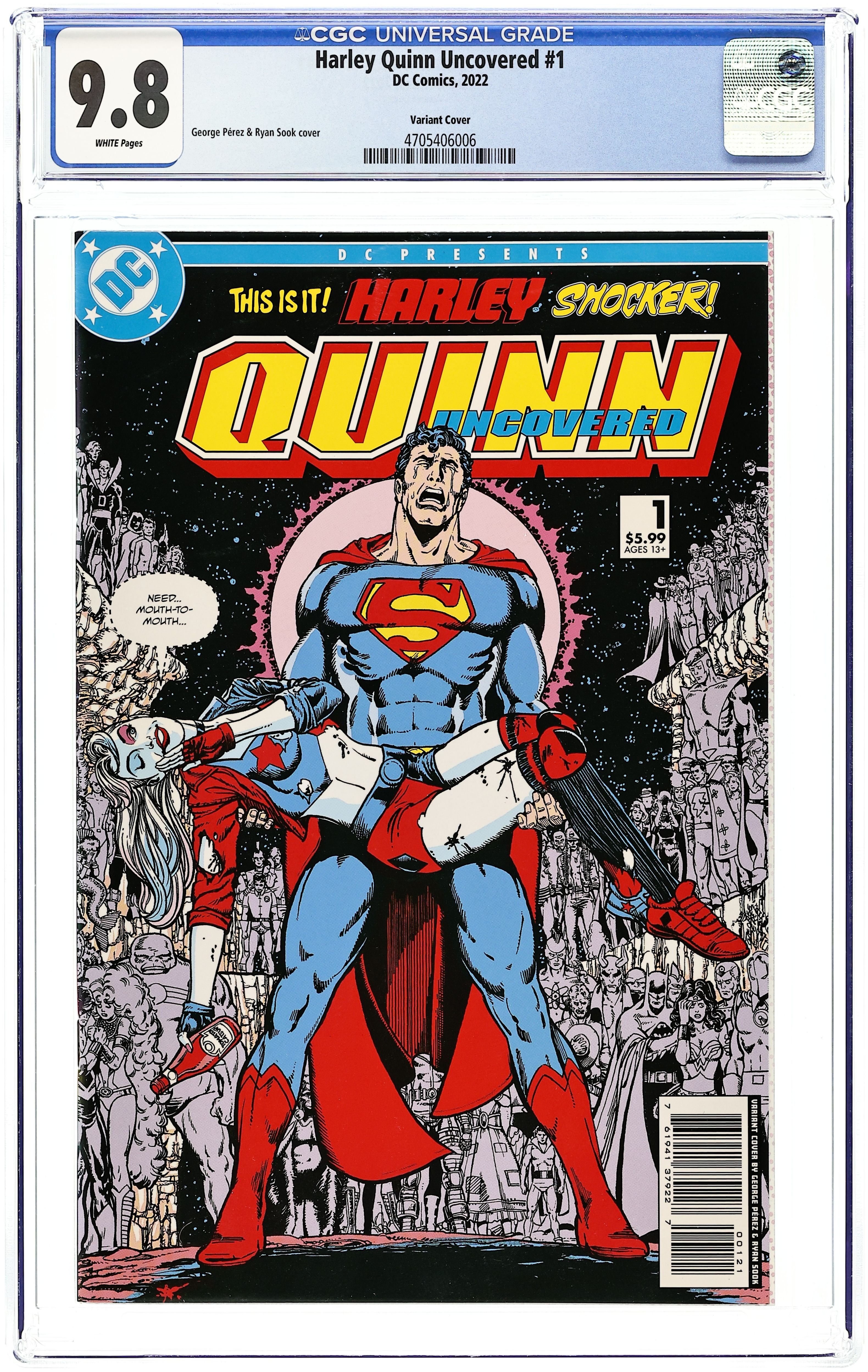 Cover by George Perez, Ryan Sook. Art by Riley Rossmo, Kael Ngu, Adam Hughes, David Nakayama, Rose Besch, Leirix, Amanda Conner, Will Jack, Warren Louw, Derrick Chew, Olivier Coipel, Sozomaika, Rachta Lin, Stanley "Artgerm" Lau and Ryan Sook. In celebration of Harley Quinn #25 comes a gorgeous, irreverent look at the amazing variant covers that helped make the Maid of Mischief magnificent! Enjoy an art book of epic proportions featuring some of the hottest creators in the industry! Cover price $5.99.