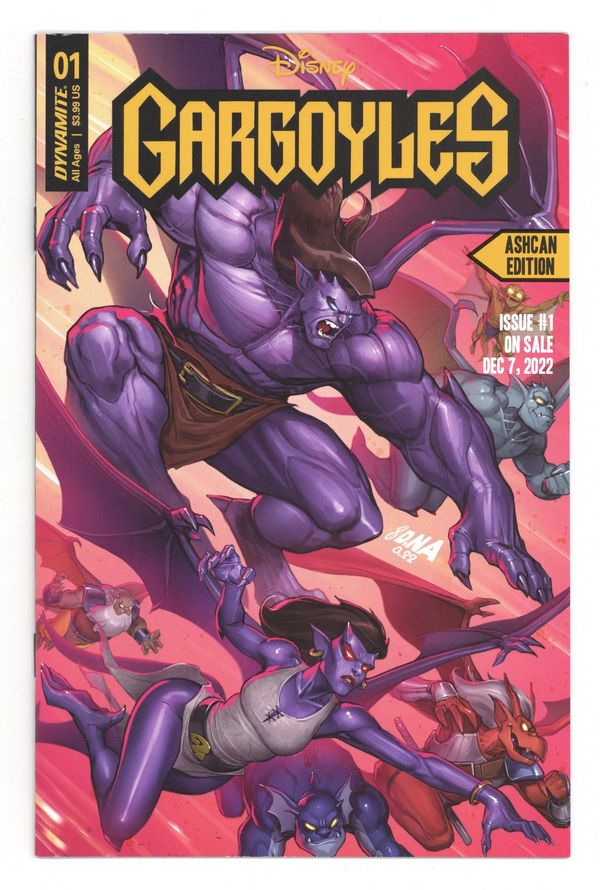 Published Nov 2022 by Dynamite Entertainment.$32.00Features an unlettered preview of Gargoyles #1, interviews with creators Greg Weisman and George Kambadais, and a sneak preview of Darkwing Duck #1.