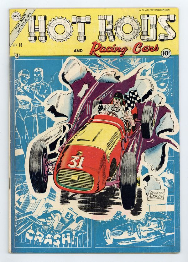 Giordano-Alascia cover. In order of appearance: "A Coward at the Wheel!!" art by Vince Alascia; "Death Claims the Loser!"; "Phil Hill and Steve Lansing"; "Briggs Cunningham and Bill Spear"; "The Last Mile!!"; "The Speed King!!" art by Ray Osrin; and "Rust Bucket Romance" art by Walter Davoren. "The Teddy Bear Car" illustrated text story. 36 pages. Full color. Cover price $0.10.