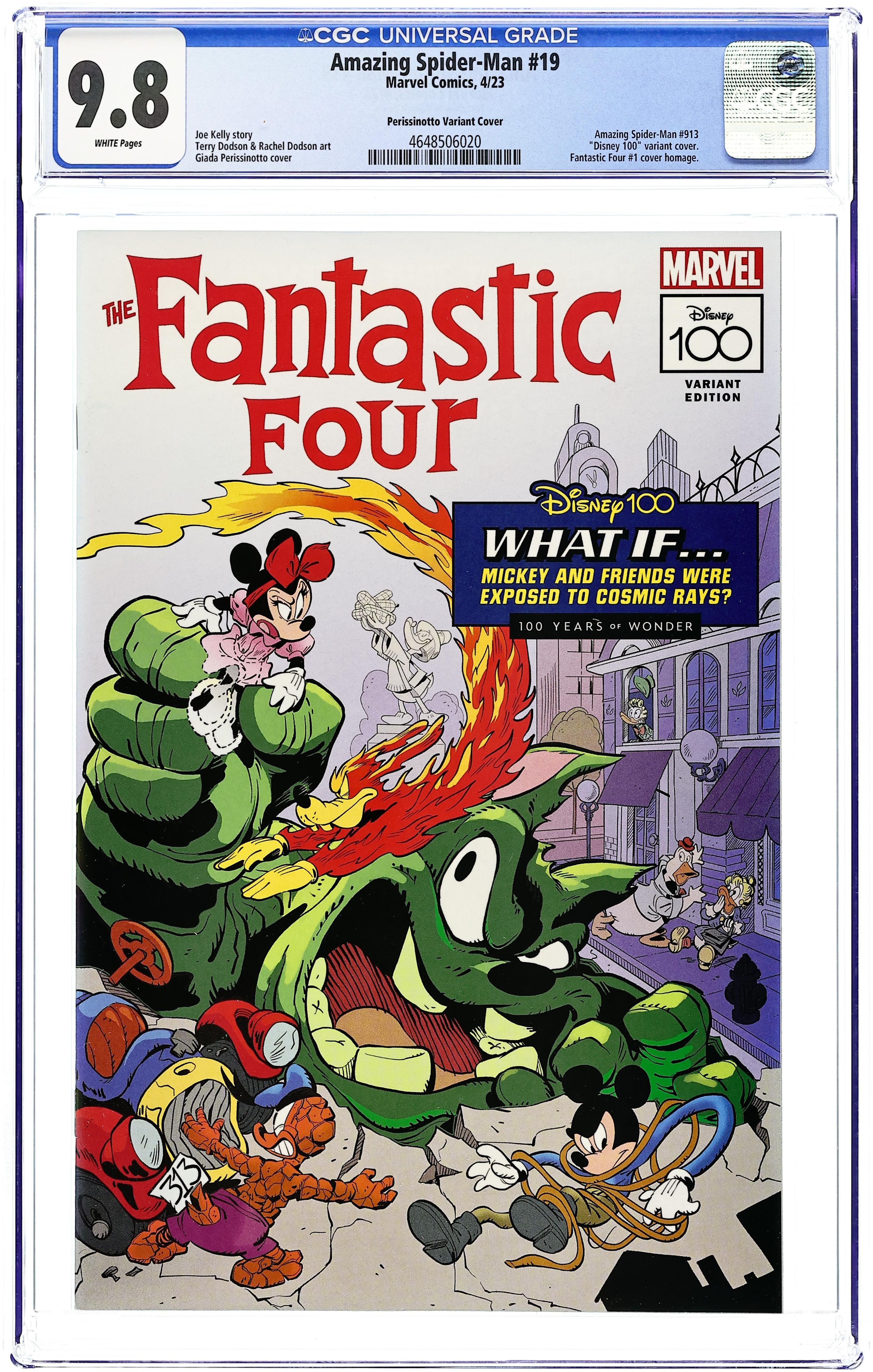 NOTE: This is a variant cover for Amazing Spider-Man #19, NOT Fantastic Four. Written by Joe Kelly. Art by Terry Dodson. Cover by Giada Perissinotto.Dark Web is over, but the effects will shake Spider-Man for a long time. To recover, Peter Parker and Felicia Hardy, A.K.A. the Black Cat, escape from the city to an exclusive spa in the Catskills! Surely, trouble won't follow our Web-Head and ruin his romantic getaway? Join superstar guest creative team Joe Kelly and Terry Dodson for this special two-parter where Spidey and Black Cat take their next step and no one tries to kill them... yet. Rated T