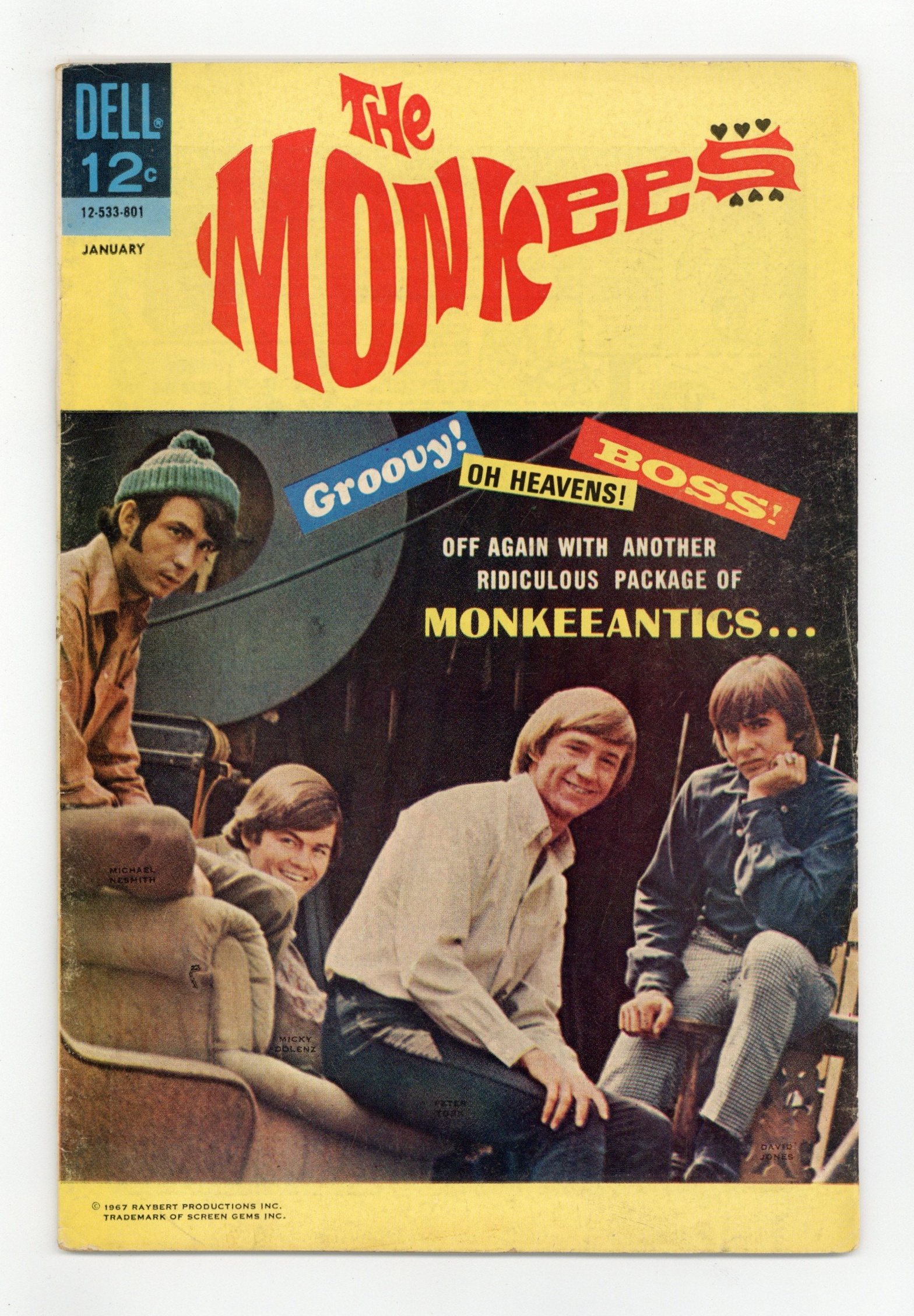 $31.00Photo cover features Peter Tork, Michael Nesmith, Micky Dolenz, and Davy Jones. Art by Jose Delbo. Cover number is 12-533-801. Dell's comic about the TV rock band does surprisingly well at capturing the madcap, absurd humor of the beloved show. A strange, beach-ball-shaped creature called a Beezle comes home with Peter. But the others suspect the strange alien creature could be an enemy agent of some kind. The guys finally get the new stereo that they won by sending in hundreds of cereal box-tops. Beezle, Beezle, Whos Got the Beezle?; Stereophonic Phun; Pen Pals. 32 pages, Full Color. Cover price $0.12.