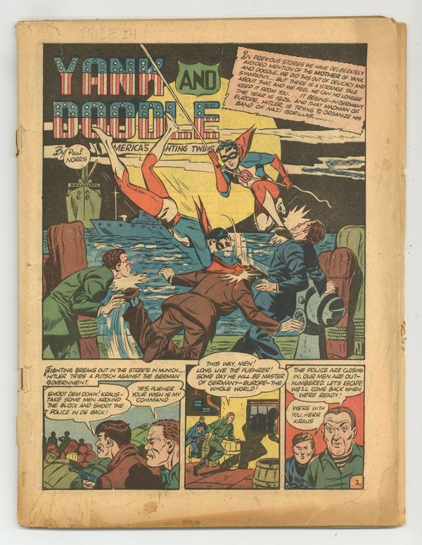 Cover art by Jack Binder. Untitled stories starring Yank and Doodle (art by Paul Norris), Dr. Frost (art by Ben Thompson), Black Owl (art by Jack Binder), Ted O'Neil, General and the Corporal (script and art by Ken Browne), Green Lama (script by Ken Crossen, art by Jack Binder), and Buck Sanders (art by Munson Paddock). Utter Failure! starring Frankenstein, script and art by Dick Briefer. A Dott in Time Solves the Crime! starring Homer Q. Dott. 68 pages, full color. Cover price $0.10.