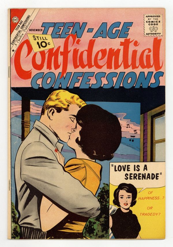 Cover by Joe Sinnott and Vince Colletta. Stories and art by Joe Sinnott, Charles Nicholas, Sal Trapani and Vince Colletta. Charlton's romance comic captures the emerging teen culture of the early 1960s, when surfing, hot rods and new fashions in dance and dress swept America. Lifelong friends Claire and Jan find their friendship tested when Fred comes along. A comics story offering advice to new brides is a hilarious peek at 1950s attitudes. Linda's perfect suburban marriage to Denny is cut short by an unexpected tragedy, in a story featuring art (and cover) by future Fantastic Four legend Joe Sinnott. Cheating on Me; Honeymoon Continued!; Only a Dream; Teen-Age Troubles; Love Is a Serenade. 32 pages, Full Color. Cover price $0.10.