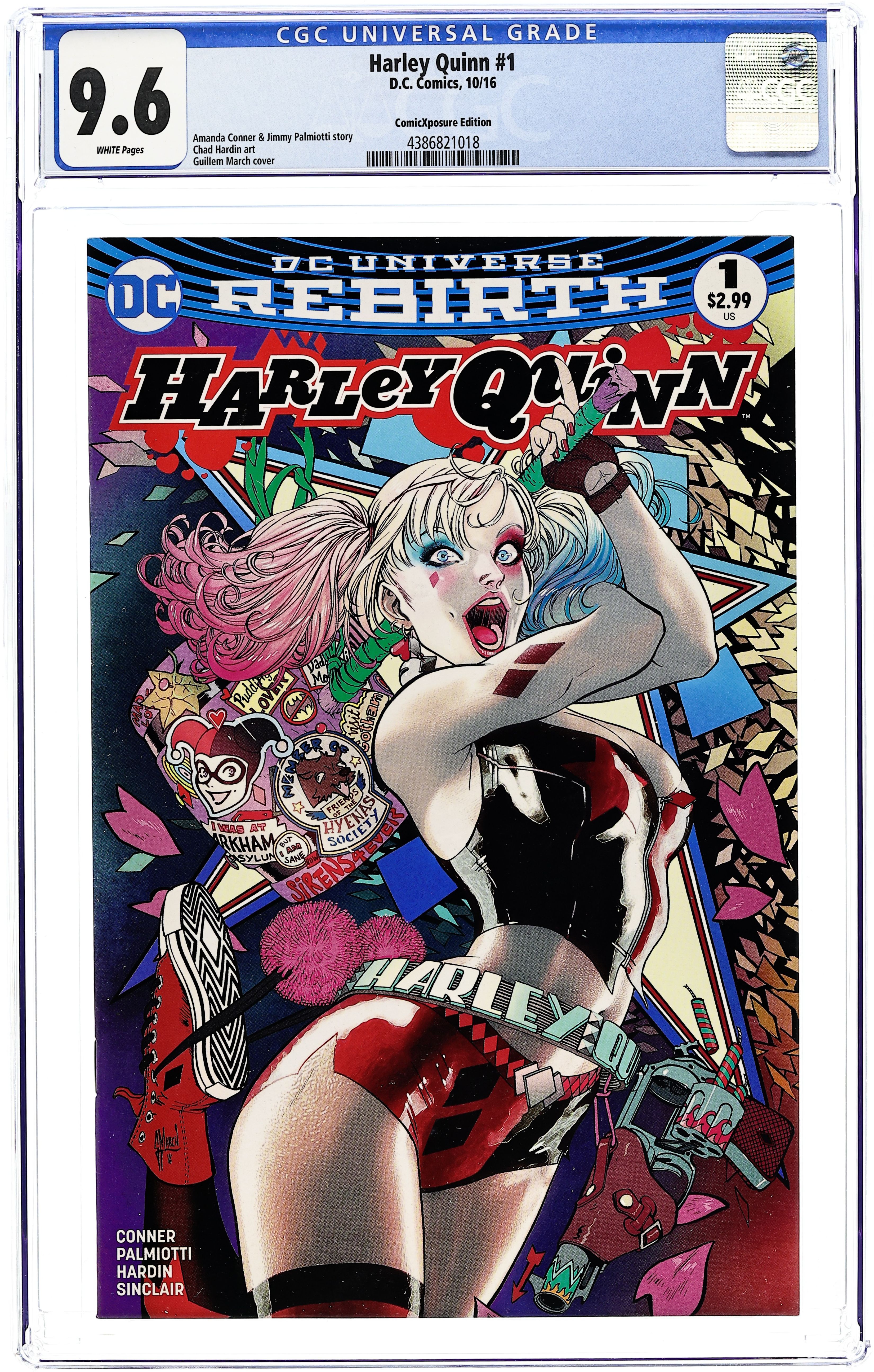 ComicXposure Exclusive Cover by Guillem March. DC Universe Rebirth - Die Laughing: Part 1 of 3 - Written by Amanda Conner and Jimmy Palmiotti. Art by Chad Hardin. 'Die Laughing' part one! Welcome back to Harley Quinn's crazy world on Coney Island…now get ready to wave goodbye, because everyone there just might get eaten alive! Harley's gotta protect her neighborhood against an all-out zombie apocalypse! Break out the chainsaws, everybody! 32 pages, full color. Rated T+
