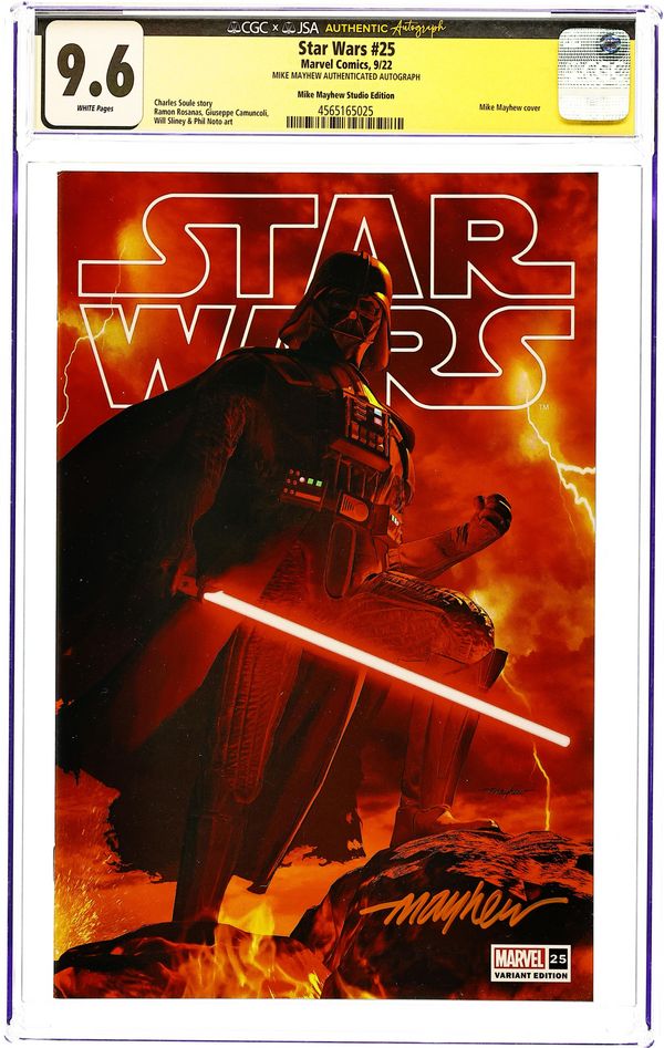 Mike Mayhew Studio Edition Cover by Mike Mayhew. Written by Charles Soule. Art by Giuseppe Camuncoli. A Celebration across the Galaxy for STAR WARS' 25th issue! With stories set from the Prequel to the Sequel eras, experience new tales of OBI-WAN & ANAKIN, DARTH VADER, POE DAMERON and KYLO REN. Join Charles Soule, along with his previous artistic collaborators, for this era-spanning celebration! 28 pages, full color. Rated T
