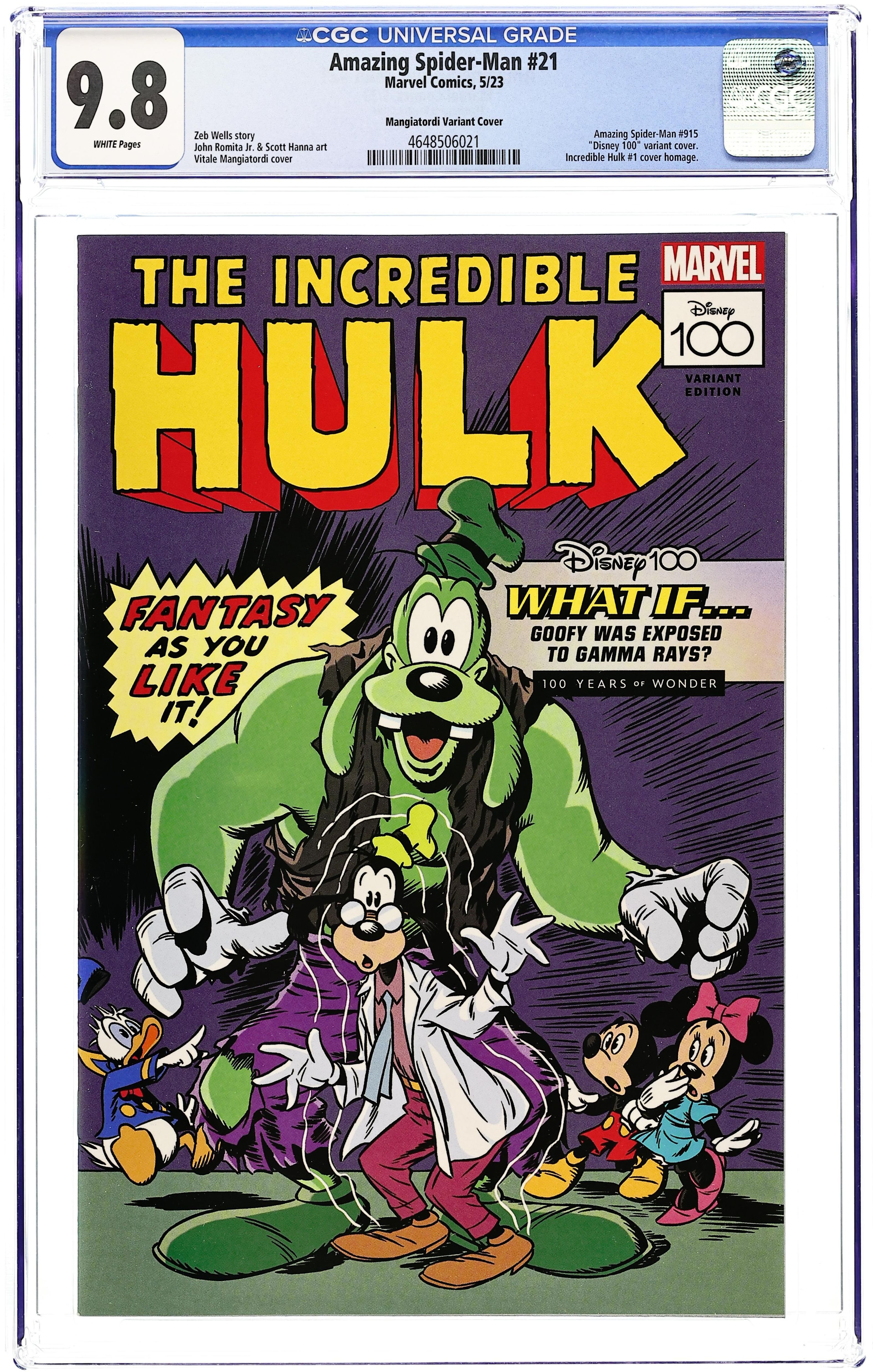 NOTE: This is a variant cover for Amazing Spider-Man #21, NOT Incredible Hulk. Written by Zeb Wells. Art by John Romita Jr. Cover by Vitale Mangiatordi. WHAT HAPPENED TO PETER AND MARY JANE?! It's time. This arc will answer your questions including…WHAT DID PETER DO?! Who caused all of this? 28 pages, full color. Rated T Cover price $3.99.