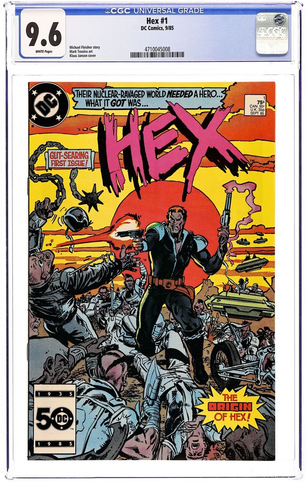Direct Edition. The very first issue of a monthly series! Legendary gunfighter Jonah Hex takes a little trip (or, shall we say, he's taken on a little trip) from the 1800's to the 21st century. As he explores this bizarre new post-nuclear world, the only thing on his mind is, can he get back to his own era? Ever? Written by Hex originator, Michael Fleisher. Art by Mark Texeira, with cover by Texeira and Klaus Janson. Cover price $0.75.