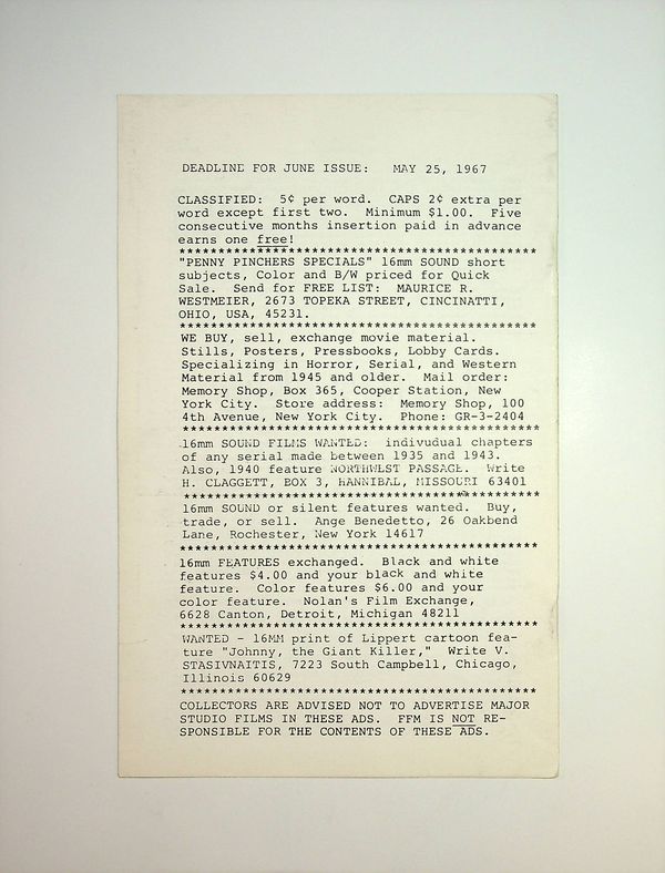 Fanzine published by Leonard Maltin dedicated to films from the Golden Age of Hollywood. 5.5" x 8.5", 16 pages, B&W Cover price $0.35.