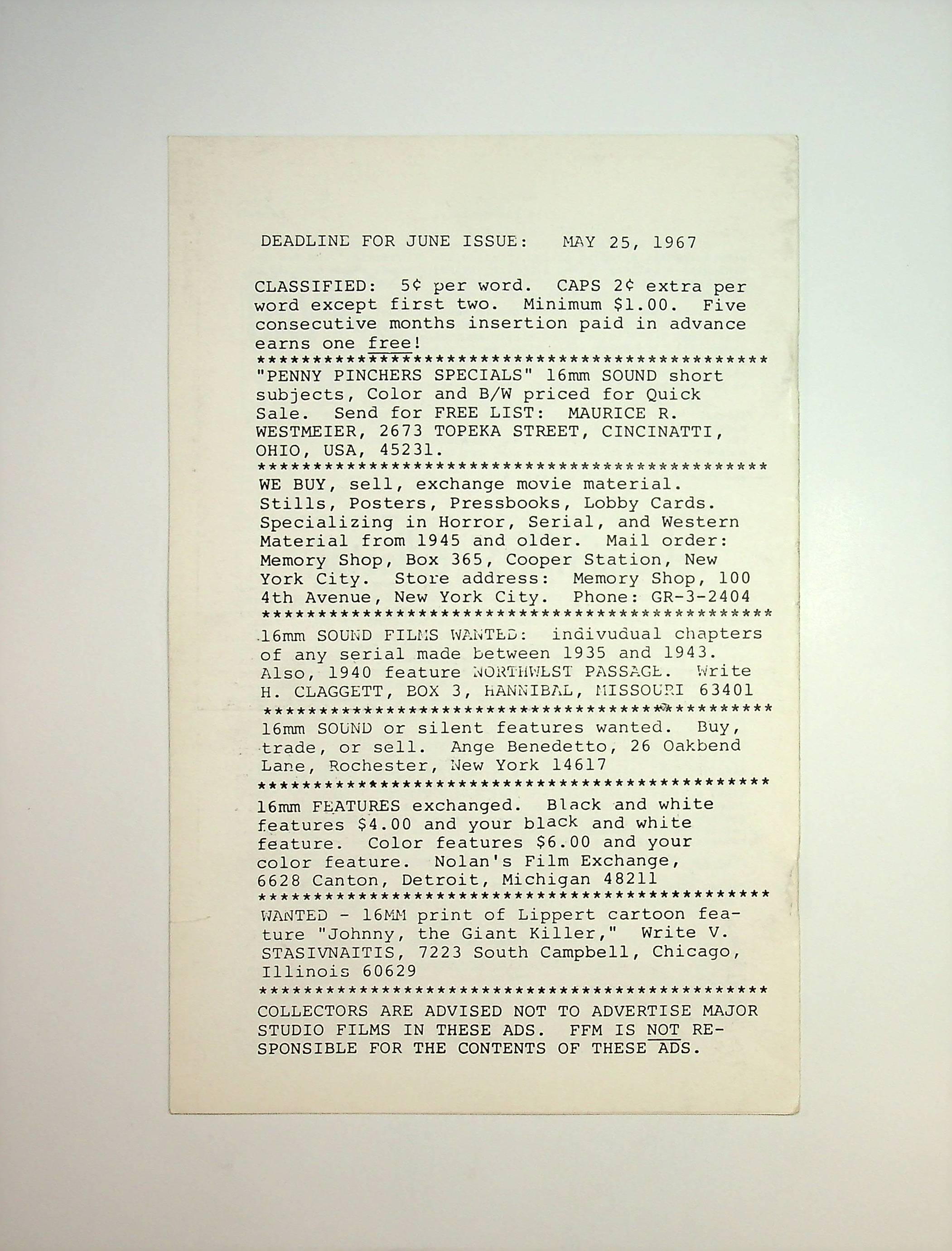 Published May 1967 by Leonard Maltin.$2.50- Staple rust: Slight.