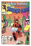 Published Sep 1985 by Marvel/Star Comics.$10.00Spider-Ham and J. Jonah Jackal find themselves at the mercy of the denizens of Shang-Goo-La, the legendary lost city in the old west where nobody ever grows old, in "The Town That Never Grew Up!" Script by Steve Skeates, pencils by Mark Armstrong, inks by Joe Albelo. Back-up tale: Iron-Mouse by Skeates & Albelo. Cover by Armstrong & Albelo. Cover price $0.65.