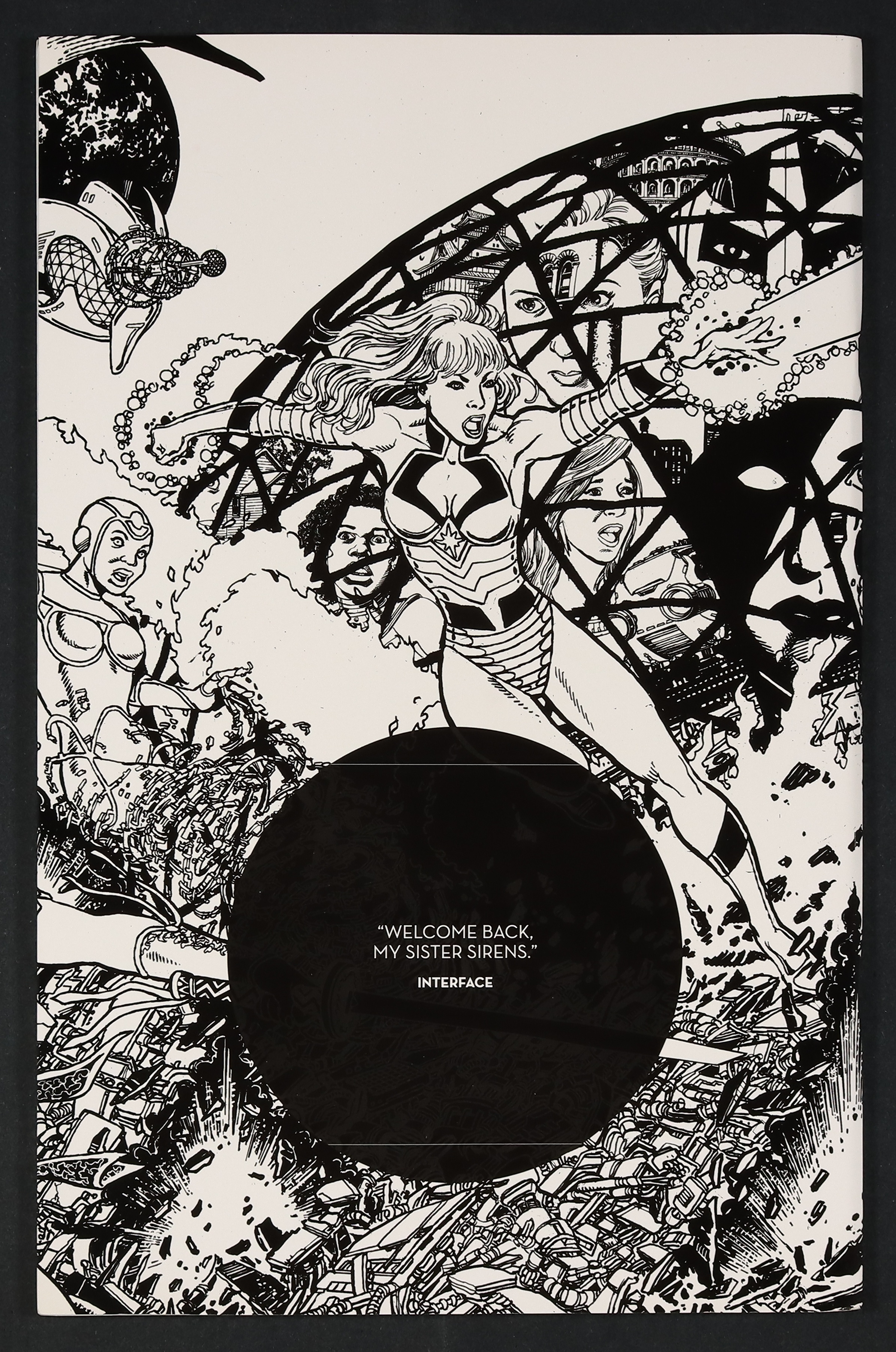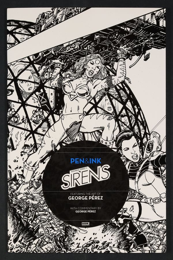 Published 2015 by Boom Studios.$23.00Volume 1 - 1st printing. Written and illustrated by George Perez. What's to Love: With the previous editions of Pen & Ink featuring the art of industry veteran Brian Stelfreeze (Day Men) and newcomer Vanesa R. Del Rey (Hit), we wanted to go back to a comics legend, and naturally that had to be George Perez! His detailed pencils and inks on George Perez's Sirens-his first original title in over 10 years-are on full display and are a testament to the lasting popularity of his skills. What It Is: Perfect for fans who want to look "behind the scenes" of making comics, the Pen & Ink series features artwork from highly skilled illustrators stripped down to their inks in the original artboard dimensions of 11" x 17"-or, in this case, and for the first time in a Pen & Ink book, stripped down to the pencils alongside inked and lettered pages. Get a detailed look at the making of George Perez's Sirens #1 from one of the industry's greatest masters. Softcover, 11" x 17", 48 pages, B&W. Cover price $14.99.