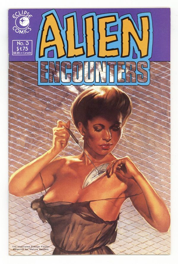 $13.00The illustrated science fiction magazine for mature readers. A sexy heroine in battle in "The Heroine." Story & art by James Brock. A nagging robot in "M.O.T.H.E.R. Knows Best." Script by Buzz Dixon, art by Larry Elmore. An underworld without an overworld in "Claustrophobia." Script by Pedro Henry, art by Jim Baikie. Being different isn't all it's cracked up to be in "Relativity." Script by Paul Alexander, art by Attilio Micheluzzi. Cover by Mick Austin. Cover price $1.75.