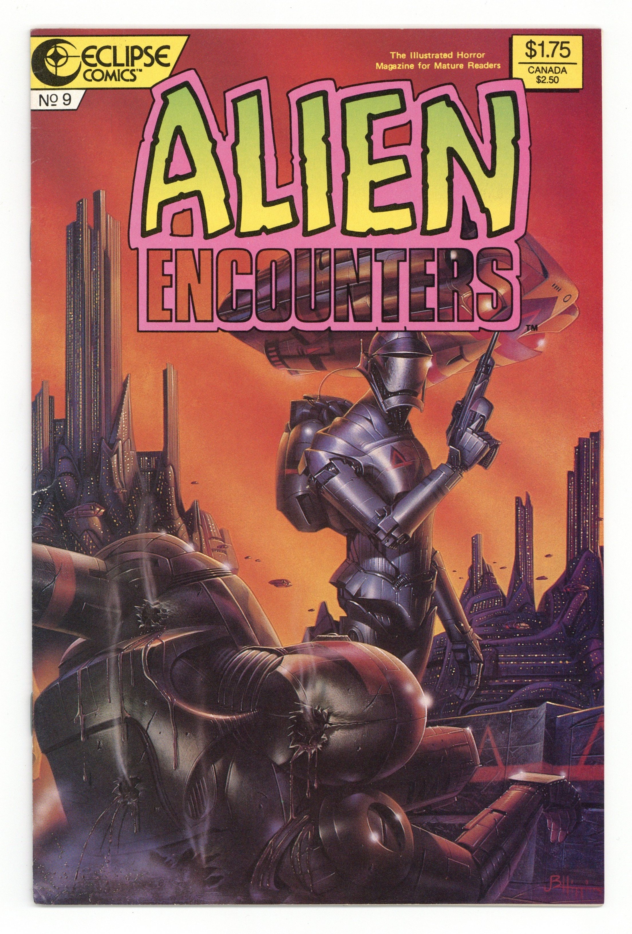 $12.50Cover by Bill Higgins. Written by Bruce Jones, Howard Zimmerman, Tom Field and Douglas Wheeler. Art by John Bolton, Larry Elmore, Lee Weeks and John K. Snyder III. The illustrated horror magazine for mature readers. In this issue: "The Conquered" by Bruce Jones and John Bolton; "Strangers on a Subway" by Howard Zimmerman and Larry Elmore; 1-page story "An Alien Encounter..." by Tom Field and Lee Weeks; and "Diseased!" by Douglas Wheeler and John K. Snyder III. 32 pages, full color. Mature Readers. Cover price $1.75.