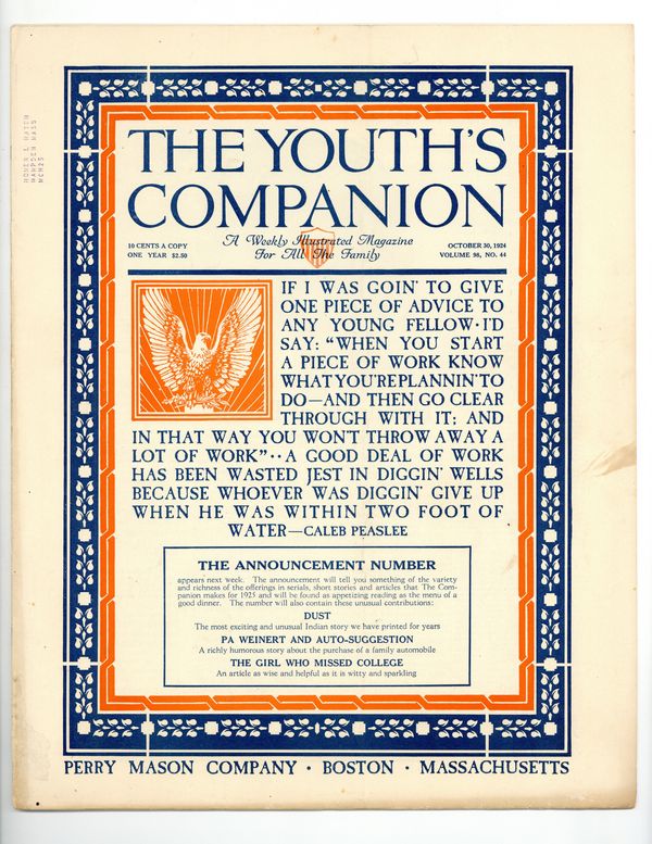 Published Oct 1924 by Perry Mason Company.$8.00- Spine split 20%. Staple rust: Moderate.