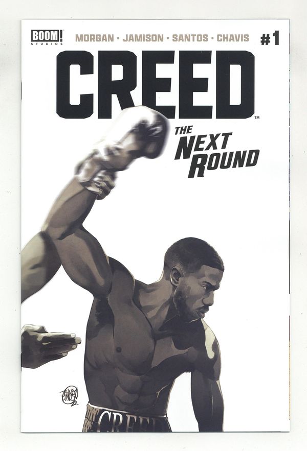 Published Jun 2023 by Boom Studios.$5.00Limited 1 for 25 Retailer Incentive Variant Cover. Written by LaToya Morgan, Jai Jamison. Art by Wilton Santos. Cover by Jahnoy Lindsay. Ten years after the events of the blockbuster Creed III, Amara Creed is on her own path, stepping outside her father Adonis Creed's shadow and training like there's no tomorrow. But when her division opponents no longer present a challenge, Amara's drive will have her following in her father's footsteps, going underground. She'll also need the perfect trainer, but perfection comes with tangled strings attached. Superstar writers LaToya Morgan (Dark Blood, AMC's The Walking Dead) and Jai Jamison (Superman & Lois), artist Wilton Santos (Break Out), alongside Creed III director and star Michael B. Jordan bring Creed to comics in a story no fan of the franchise can afford to miss! 24 pages, full color. Cover price $4.99.