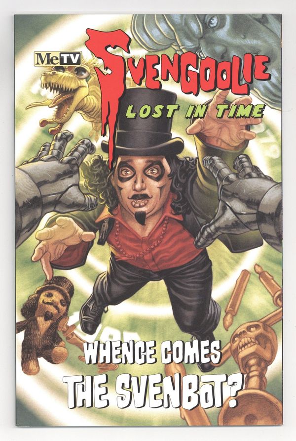 Published Jul 2023 by Frank Miller Presents LLC.$40.00Written by Rich Koz & Various. Art by Chris Jones & Various. Cover by Stéphane Roux. In this first of two specials, MeTV sensation Svengoolie appears in his first full length comic book feature, as the evil Svenbot goes to the past to undo Svengoolie's future. Learn the secrets behind Sven, and his crazy cast of friends, Boddy Sorrell, Tombstone and Kerwyn as told by the show's creators Rich (Svengoolie) Koz, Jim Roche and Chris Faulkner. Buy this at your local store and remember, No Personal Checks! 48 pages, full color. Cover price $7.99.