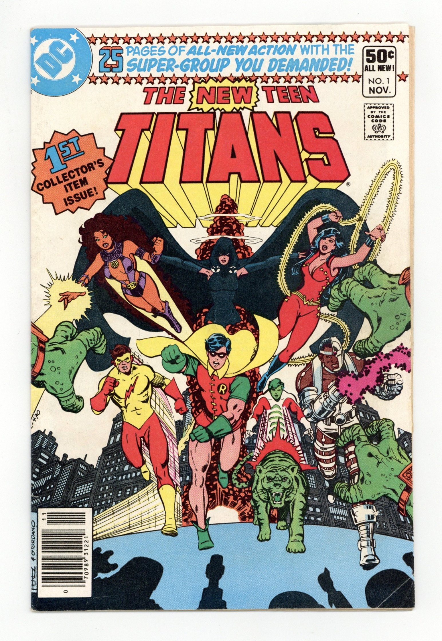 Ends Dec 29 9:00 PM CST Bid History 9 bids Current Bid $67 Your Secret Max Bid If you'd like to bid, please log in or register. Newsstand Edition. The mysterious Raven tries to convince Robin, Wonder Girl, Kid Flash, Changeling, Cyborg & Starfire to form a new Teen Titans team in "The New Teen Titans." Cameos by Bruce Wayne and Grant Wilson. Script by Marv Wolfman, pencils by George Perez, finishes by Romeo Tanghal. Cover by Perez & Dick Giordano. Cover price $0.50.