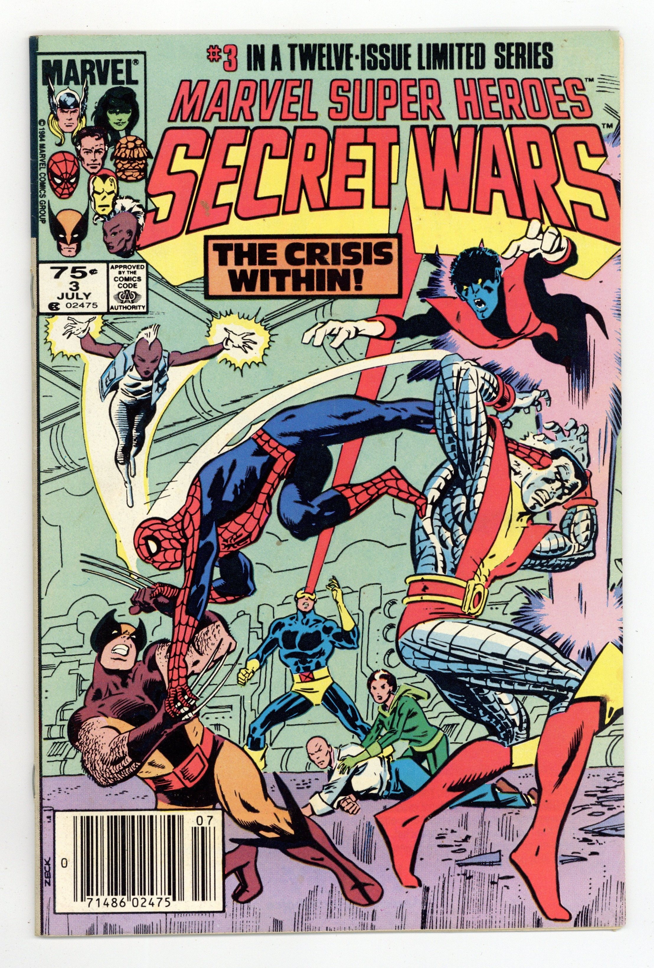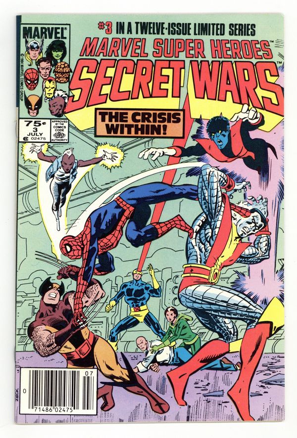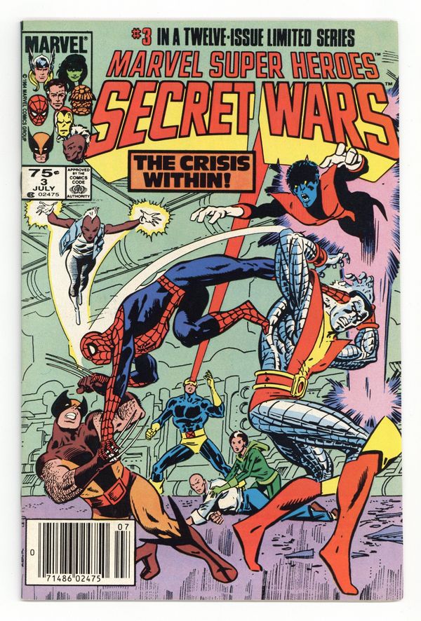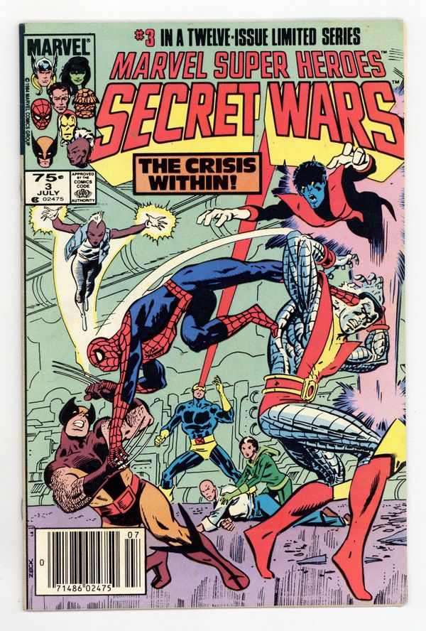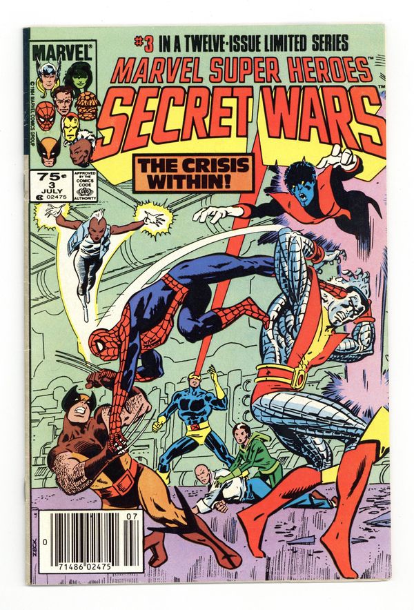 Newsstand Edition. "Tempest Without, Crisis Within!" Part 3 of 12. Story by Jim Shooter. Art by Mike Zeck and John Beatty. Can it be true? Do Marvel's Merry Mutants intend to betray the other heroes? Not if Spidey has anything to say about it. It's the Amazing Spider-Man vs. the Uncanny X-Men, and no matter who wins, the heroes lose. Meanwhile, Doctor Doom adds to his already formidable ranks. Enter: the super strong Titania and the fiery Volcana (1st appearance for both). 36 pages, full color. Cover price $0.75.