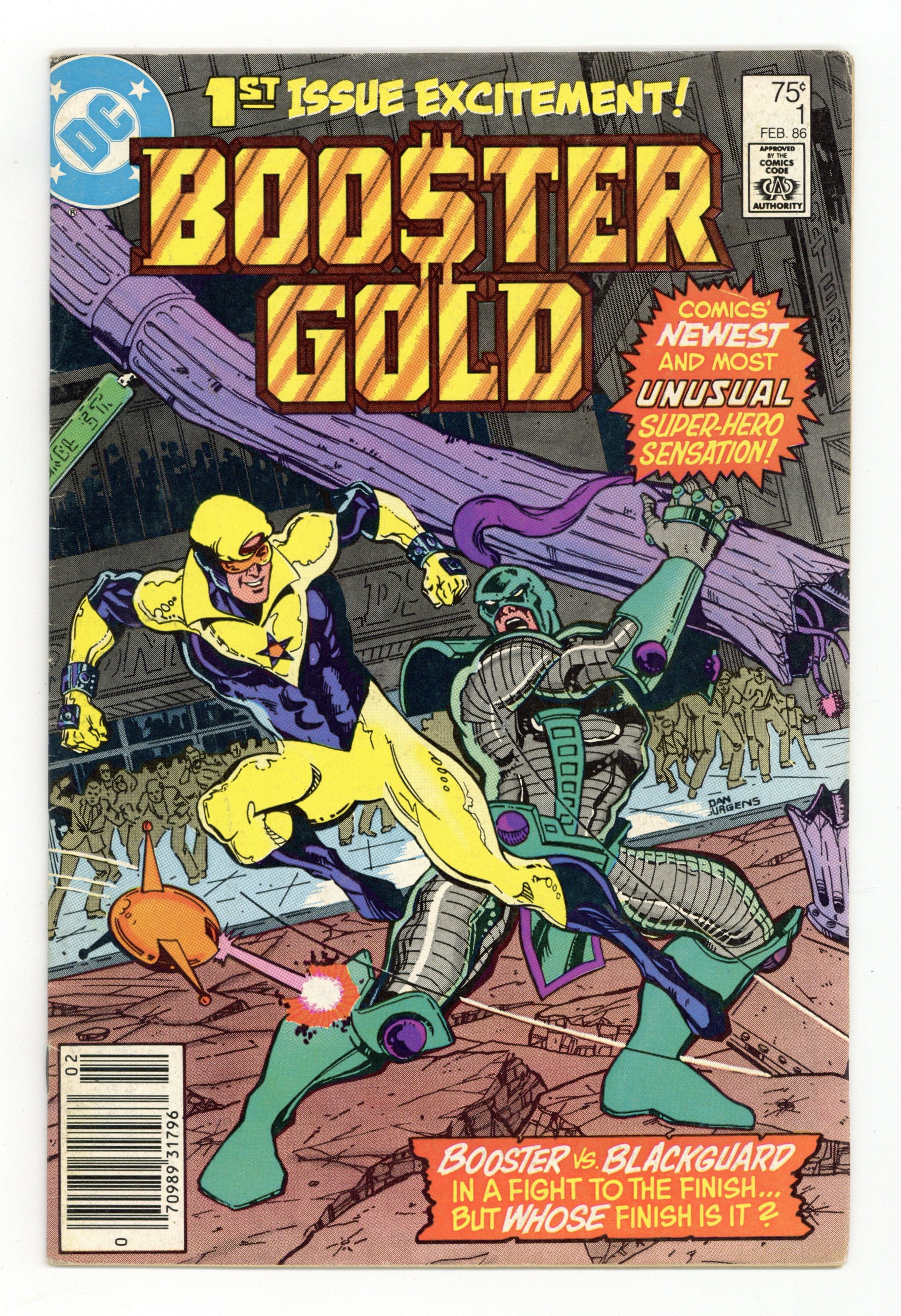 Newsstand Edition. Script and pencils by Dan Jurgens, inks by Mike DeCarlo. After negotiating a movie deal, media darling Booster Gold is put to the test when he battles Blackguard in the streets of Metropolis in "The Big Fall". Jimmy Olsen cameo. Jurgens cover. Cover price $0.75.