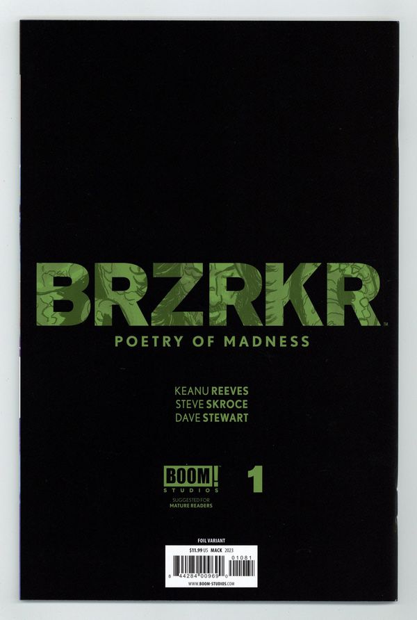 Published Jul 2023 by Boom Studios.$50.00Limited 1 for 100 Retailer Incentive Variant Cover. Written by Keanu Reeves, Steve Skroce. Art by Steve Skroce. Cover by David Mack. A sea of gore and devastation awaits as B, through a fateful chance encounter, safeguards the advanced and ancient realm of Atlantis as its unstoppable protector. But a sickly king serves as a symbol for the rot inside, as the security and bliss created through B's violence is shallow… The cracks created by a secret cult might spell a monstrous end for the legendary city, one beyond even B's ability to save. Renowned filmmaker and record-shattering comic creator Keanu Reeves joins acclaimed writer and artist Steve Skroce (Doctor Strange) for a one-shot special that fans of Lovecraftian horror would be mad to miss! 56 pages, full color. Rated M Cover price $11.99.