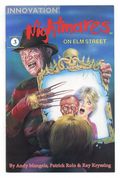Published Dec 1991 by Innovation.$24.00Written by Andy Mangels. Art by Patrick Rolo and Ray Kryssing. Neil is in a coma, Nancy Thompson doesn't seem to be protecting the dream plane, and Devonne has been released from the asylum. How does Springwood's mysterious dreamtime madman, Freddy Krueger, fit into it all? And who will survive this intense story? 32 pages, full color. Mature Readers. Cover price $2.50.