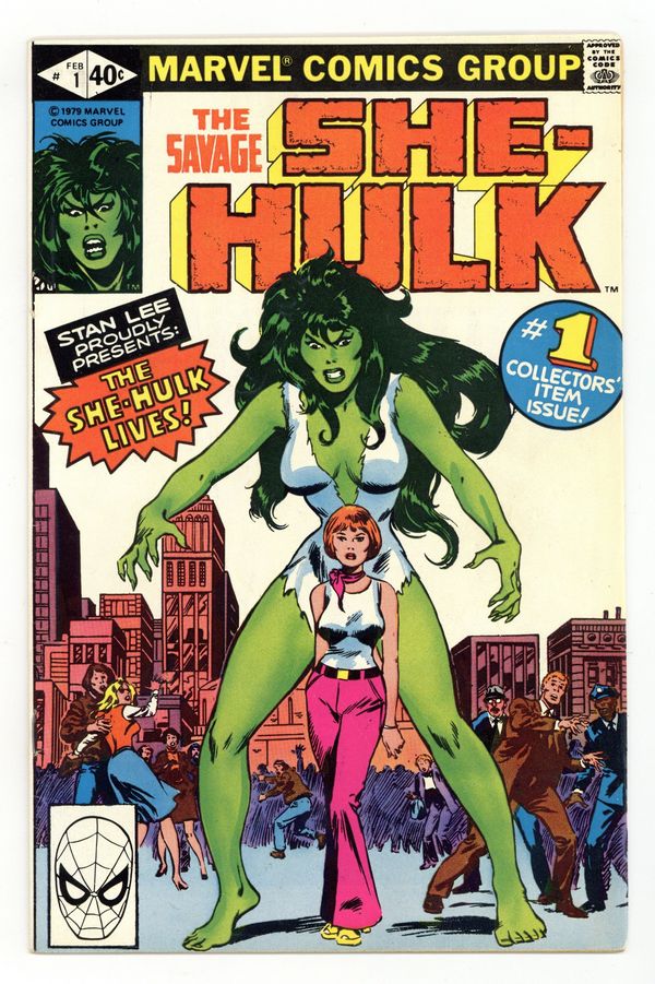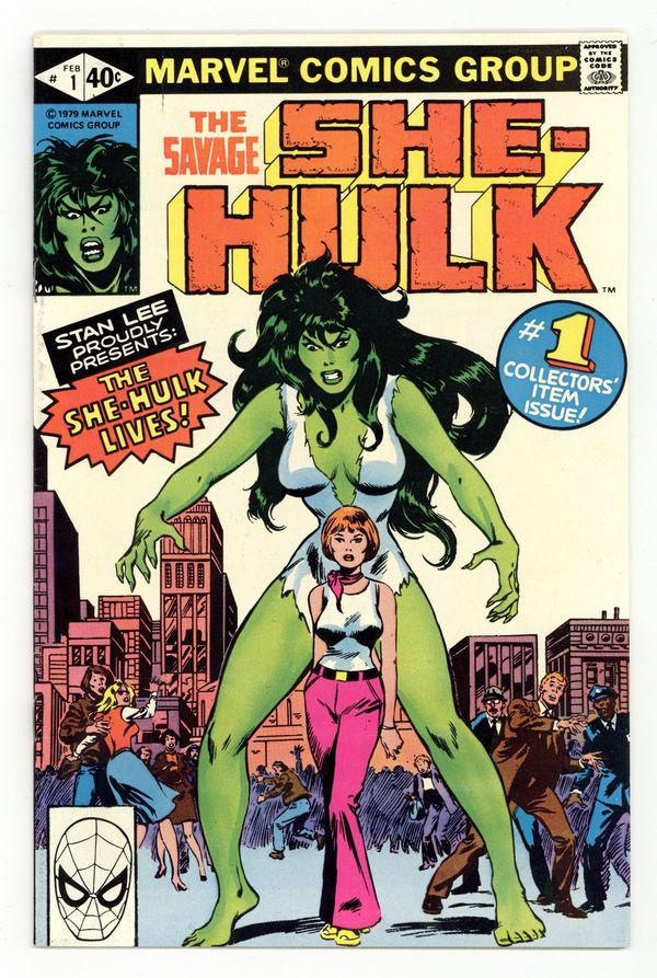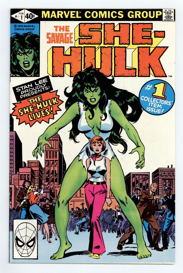 Starts May 11 Direct Edition. 1st appearance and origin of the She Hulk. "The She-Hulk Lives!" Guest-starring Bruce Banner. Story by Stan Lee. Art by John Buscema and Chic Stone. Jennifer Walters is on the verge of death after an attempted assassination, and the only thing that will save her life is a blood transfusion from her cousin, Bruce Banner...AKA the Incredible Hulk! His gamma-irradiated blood sparks a startling transformation in his cousin, and she will forevermore be known as the Savage She-Hulk! Cover price $0.40.