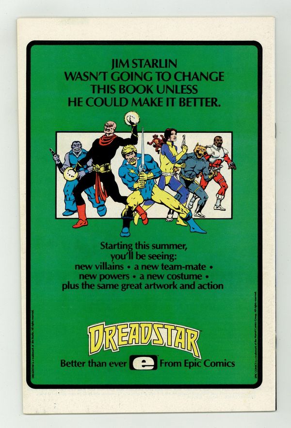 Tags: Hero/Villain Teams$18.00Direct Edition. "A Little Death...!" Part 6 of 12. Story by Jim Shooter. Art by Mike Zeck and John Beatty. As Doctor Doom continues to explore the massive homeworld of Galactus, he discovers the nefarious Klaw and recruits the sound-master to his cause. Meanwhile, the X-Men, Cyclops, Rogue, and Wolverine, battle for their lives against four of Marvel's deadliest villains, Doctor Octopus, Titania, Molecule Man, and the Absorbing Man. Plus, within these pages, the first casualty of war. 36 pages, full color. Cover price $0.75.