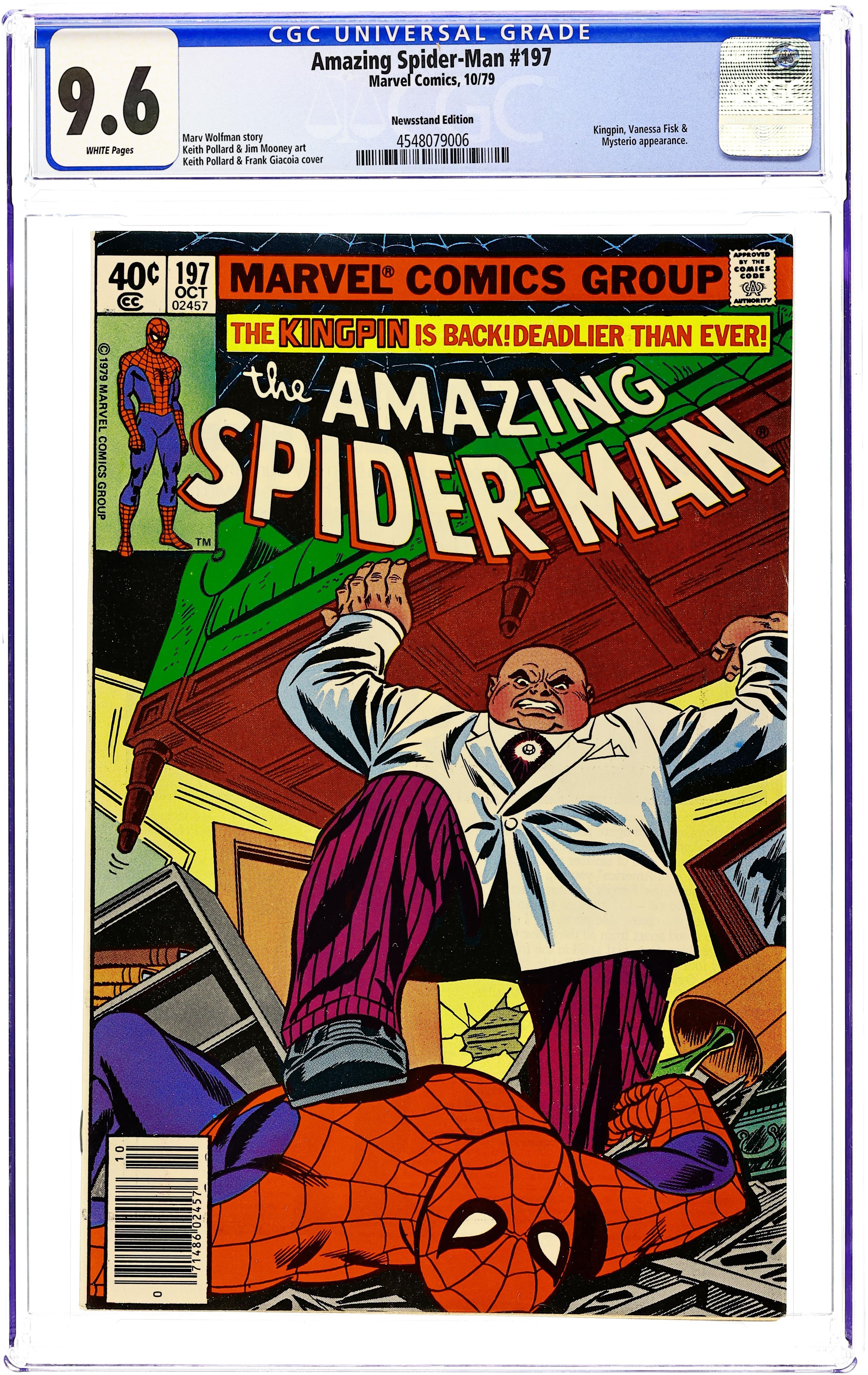 Tags: Spider-Man$15.00Newsstand Edition. "The Kingpin's Midnight Massacre!" Script by Marv Wolfman. Art by Keith Pollard (layouts) and Jim Mooney (finishes). Cover by Keith Pollard and Frank Giacoia. One of wall-crawler's best battle issues of the bronze age! The Amazing Spider-Man and the Kingpin of Crime fight from cover to cover and then some! To the web-slinger's chagrin, the Kingpin survived his plunge into the river (at the end of Amazing Spider-Man 164)! And now the over-sized crime boss has only one task left before retiring from his life of crime: destroy his long-time web-slinging foe! However Vanessa Fisk has told her husband to finish the job before midnight! So the Kingpin is working against a deadline, while the wall-crawler is just trying to run out the clock! An outstanding issue! Cameo appearances by Mysterio (in civilian clothes) and the burglar. (Notes: This issue marks a major turning point for the Kingpin. The popular super-villain transitions into Frank Miller's Daredevil title to become a major antagonist of the Man Without Fear beginning in Daredevil 170 & 171.) 36 pages. Cover price $0.40.