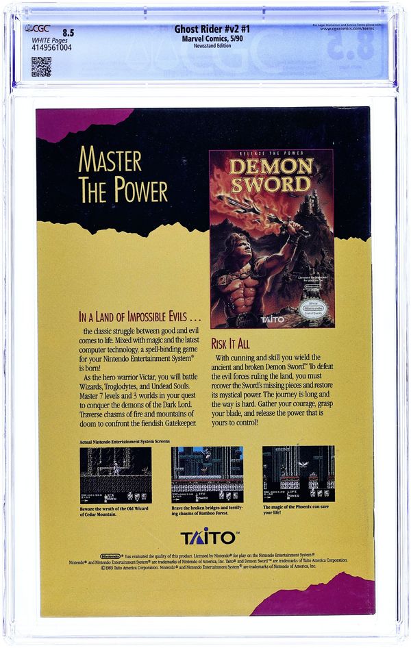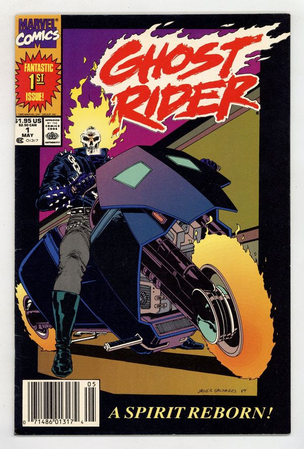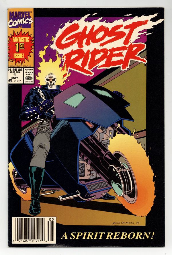 Newsstand Edition. "Life's Blood!" Written by Howard Mackie. Art by Javier Saltares and Mark Texeira. The Spirit of Vengeance returns! But who is this new Ghost Rider and what is his new mission. The House of Ideas redefines the supernatural for the 90s! Kingpin cameo. 32 pages, FC. NOTE: 1st appearance of Danny Ketch (Ghost Rider II) and 1st appearance of Deathwatch. Cover price $1.95.