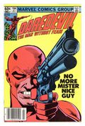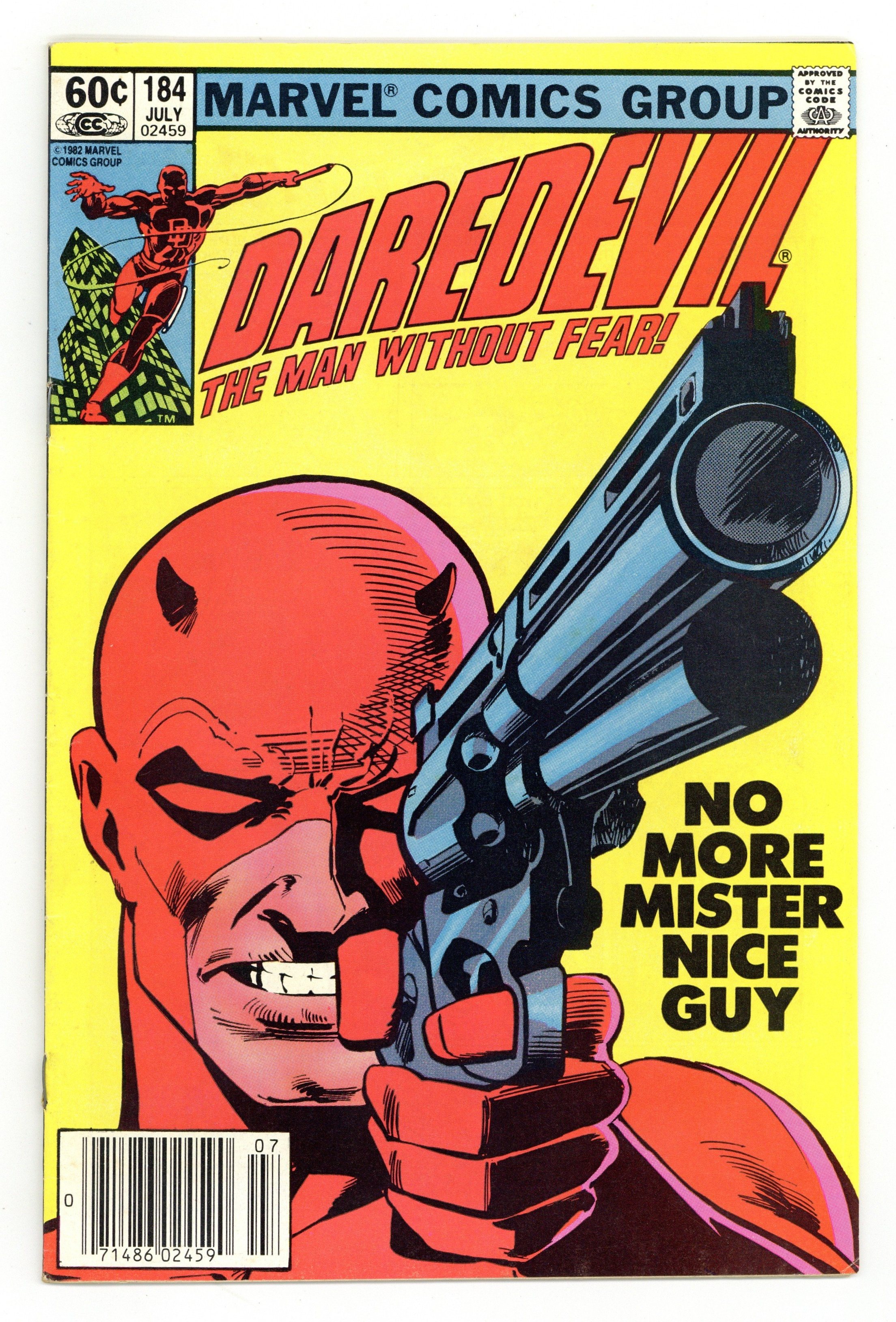 Newsstand Edition. Cover pencils by Frank Miller, inks by Klaus Janson. Good Guys Wear Red!, script by Frank Miller and Roger McKenzie (uncredited), pencils by Frank Miller, inks by Klaus Janson; DD and the Punisher hunt down Hogman for selling drugs to kids, but the two heroes clash over their methods; DD ends up shooting the Punisher with his own gun; 2nd part of Angel Dust story originally rejected by the CCA. Letter to the editor from comics editor Diana Schutz. 36 pgs. Cover price $0.60. Cover price $0.60.