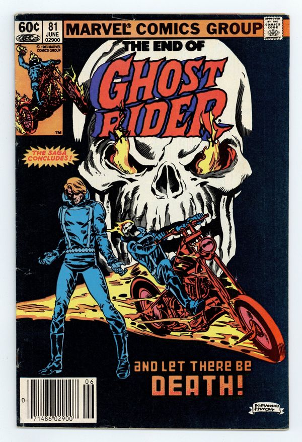 Tags: Ghost Rider$25.00Newsstand Edition. Final Issue - Part 2 of 2 - "The End of the Ghost Rider!" Story by J.M. DeMatteis and Bob Budiansky. Art by Bob Budiansky and Kevin Dzubans. Centurious has captured the soul of Johnny Blaze, weakening Zarathos. The only way to save both their lives is for a hellspawn to make the ultimate sacrifice. Johnny Blaze's future and eternal soul rely on the courage and pity of a demon he has been at war with for years. Get ready for the last ride of the Ghost Rider! 32 pages, FC. Cover price $0.60.
