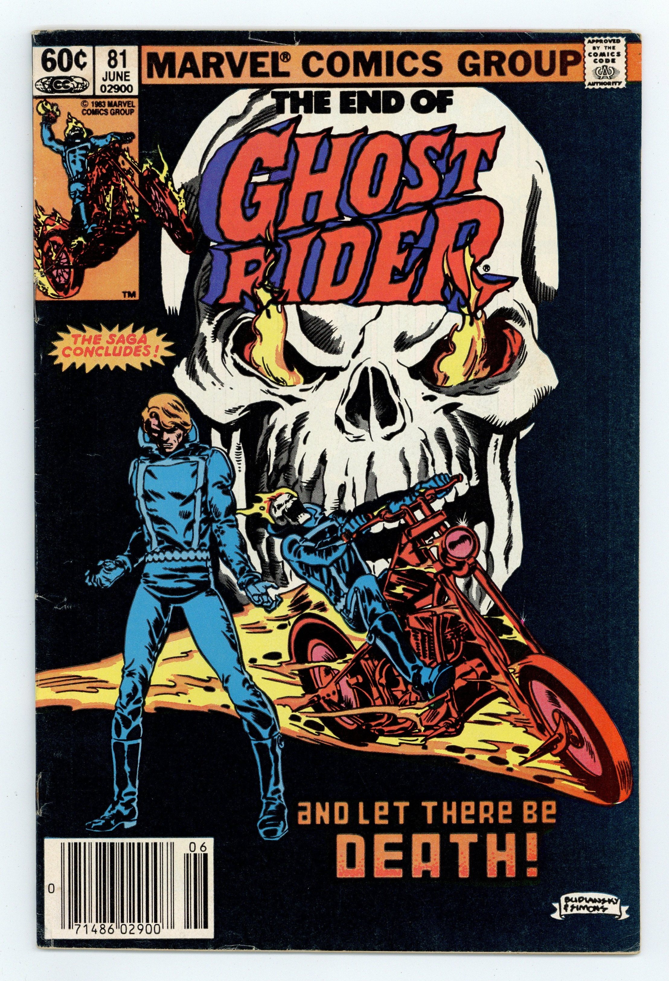 Tags: Ghost Rider$21.00Newsstand Edition. Final Issue - Part 2 of 2 - "The End of the Ghost Rider!" Story by J.M. DeMatteis and Bob Budiansky. Art by Bob Budiansky and Kevin Dzubans. Centurious has captured the soul of Johnny Blaze, weakening Zarathos. The only way to save both their lives is for a hellspawn to make the ultimate sacrifice. Johnny Blaze's future and eternal soul rely on the courage and pity of a demon he has been at war with for years. Get ready for the last ride of the Ghost Rider! 32 pages, FC. Cover price $0.60.