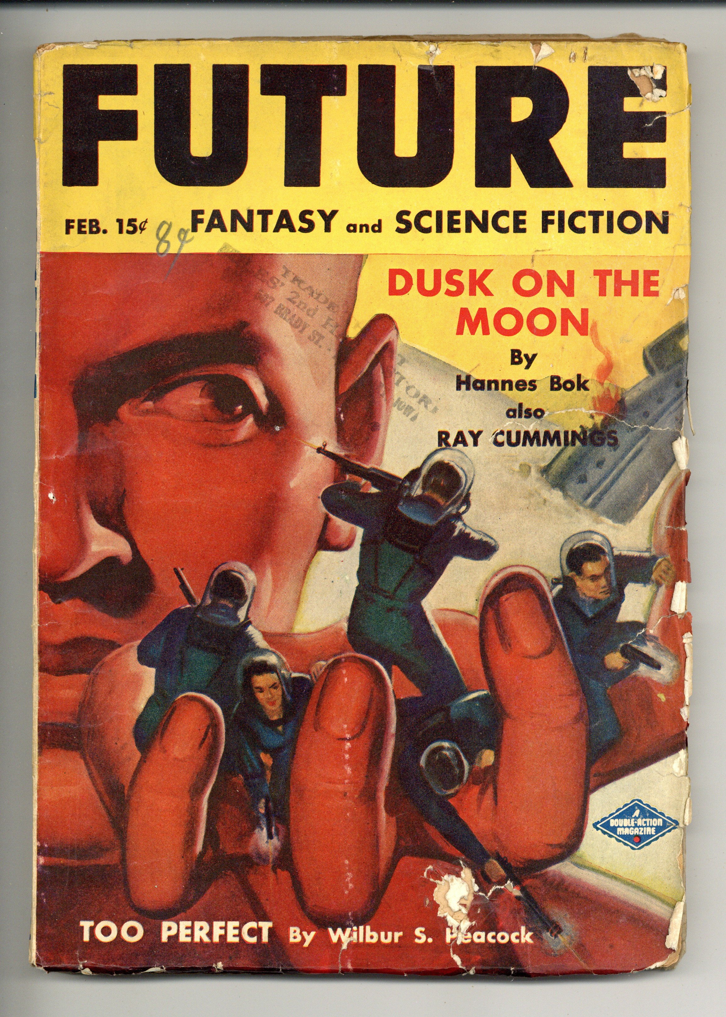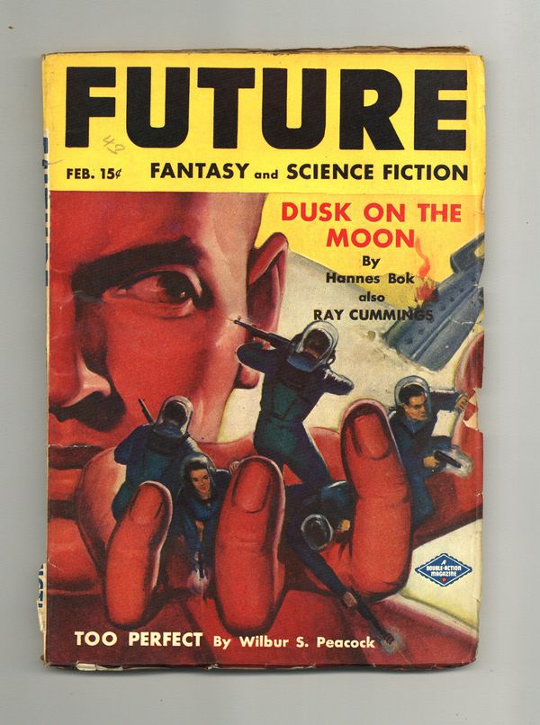 February, 1943. Complete Novel: "Dusk on the Moon" by Hannes Bok and Ray Cummings. 114 pages, B&W, 6.75" x 9.5". Cover price $0.15.
