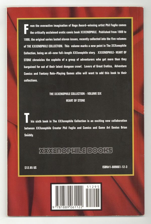 Volume 6 - 1st printing. From the overactive imgination of Hugo-Award winning artist Phil Foglio comes the ctitically acclaimed erotic comic book XXXENOPHILE. Published in the last decades of the Twentieth Century by Palliard Press, the original series of humorous short stories lasted 11 issues. With Foglio at the helm, XXXENOPHILE featured some of the most talented and respected artists in comics and science fiction. It became a true fan-favorite, eagerly awaited and vehemently requested. The first five XXXENOPHILE Collections contain all of this early material in lasting book form, while subsequent volumes present all-new erotic stories in the same high-quality format. XXXENOPHILE Collections feature stories and art by such talents as Phil Foglio, Bill Sienkiewicz, Colleen Doran, Geoff Darrow, Ruth Thompson, Lea Hernandez, John Workman, Steve Sullivan, Doug Rice, Quinton Hoover, Adam Hughes, Steve Bissette, Kelley Jones, Kevin Eastman, Michael Gilbert, Matt Howarth, and others! Softcover, 72 pages, B&W. Cover price $9.95.
