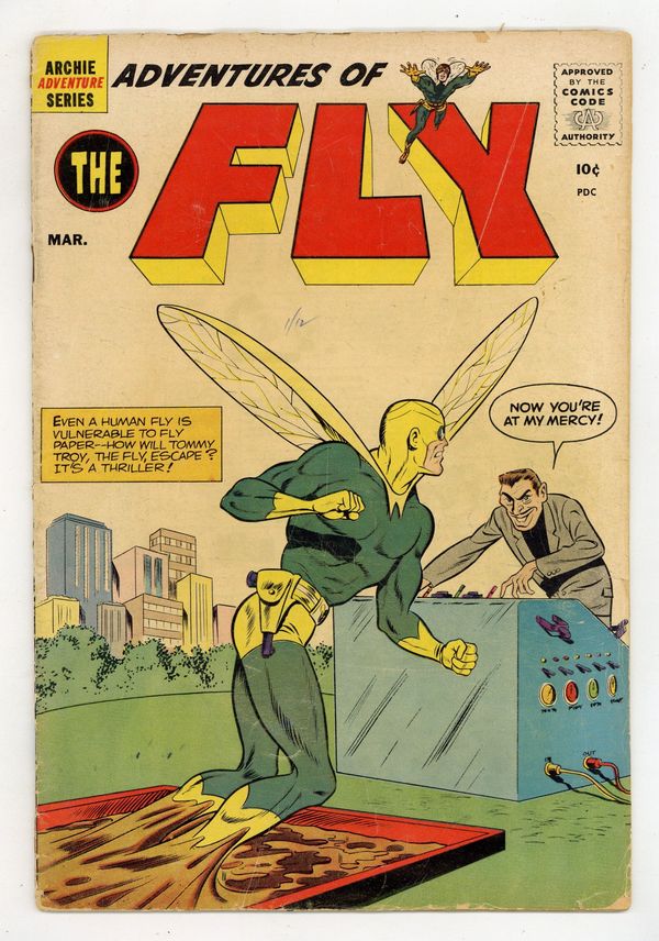 Edited by Victor Gorelick. Cover by Bill Vigoda. Stories by Robert Bernstein, Bill Vigoda, and Robert Bernstein. Archie Comics amiable and agile super-hero The Fly battles an assortment of nefarious villains, including the Spider and Tommy Troy. Bobby Bell's Judo Page, art by Jack Sparling. Article on the Constrictor species of snakes. 36 pages, full color. $0.10. Cover price $0.10.